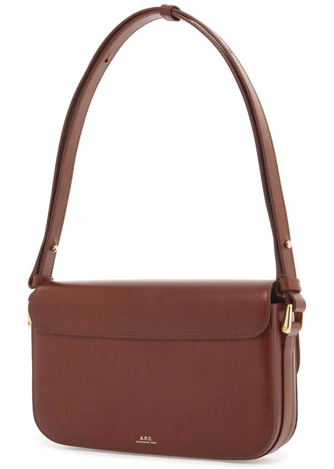 Grace Baguette bag by A.P.C. crafted in smooth leatherfeaturing flap with metal joint closure, gold-tone logo print on the back and adjustable shoulder strap to wear on the shoulder or crossbody. Cotton lining and one inner open flat pocket. Gold-finished metalware.