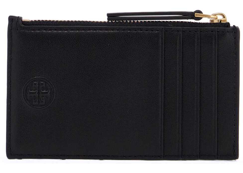 Tory Burch cardholder made of nappa leather and finished with diamond quilting on one side and tone-on-tone embossed monogram on the other. Three card slots and one zippered pocket.