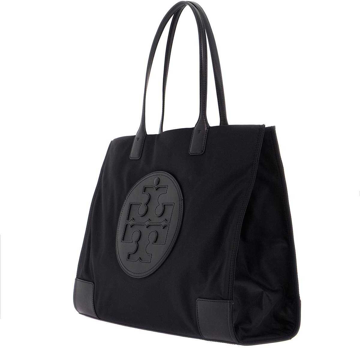 Ella Mini tote bag by Tory Burch in recycled nylon fabric, featuring double handle that can be carried by hand or on the shoulder, faux leather base and front macro T monogram. Magnetic closure, side snap buttons, interior lined in nylon fabric with two pockets. Gold-tone metalware.