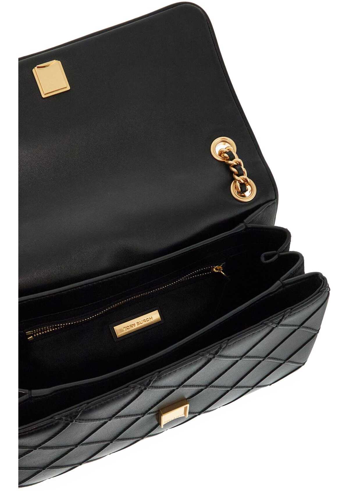 Fleming Soft bag by Tory Burch in nappa lambskin with embossed diamond quilting, suede leather sides and embossed maxi Double T logo on the top. Sliding leather-woven chain strap to carry on the shoulder or crossbody. Magnetic button closure and fabric-lined interior with one main compartment, one slit pocket, one zipped pocket and an additional compartment with a patch pocket. Gold-finished metalware.
