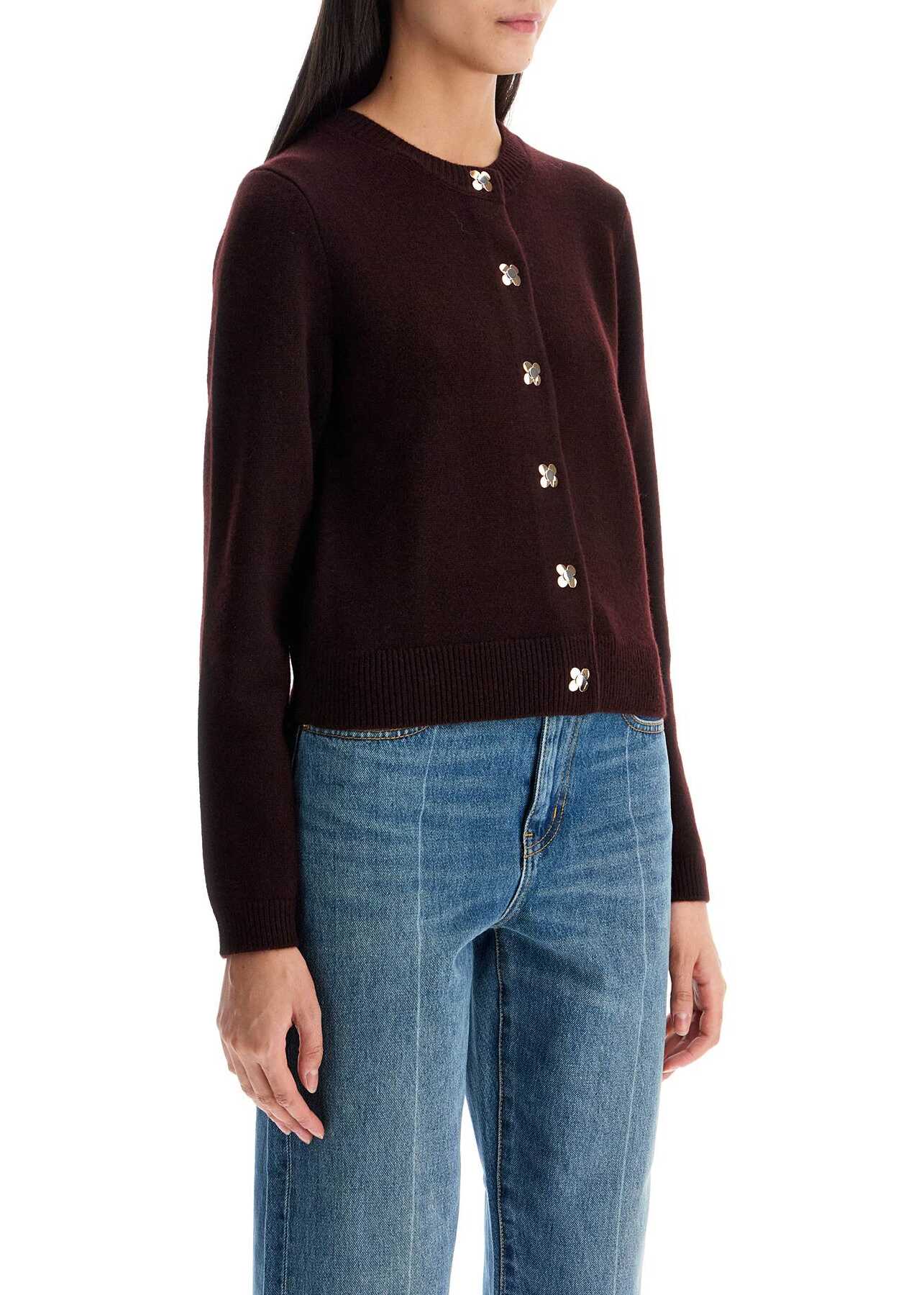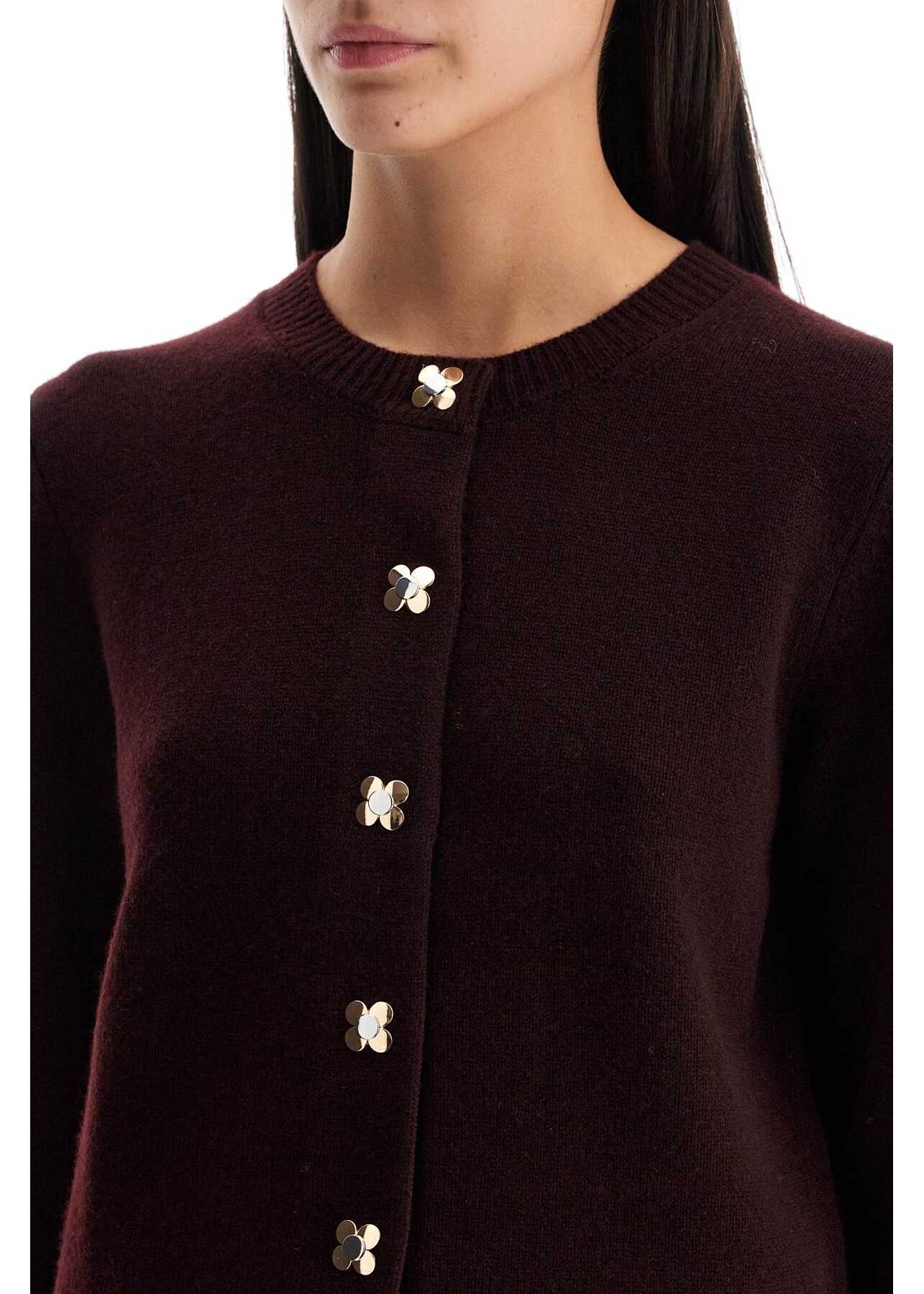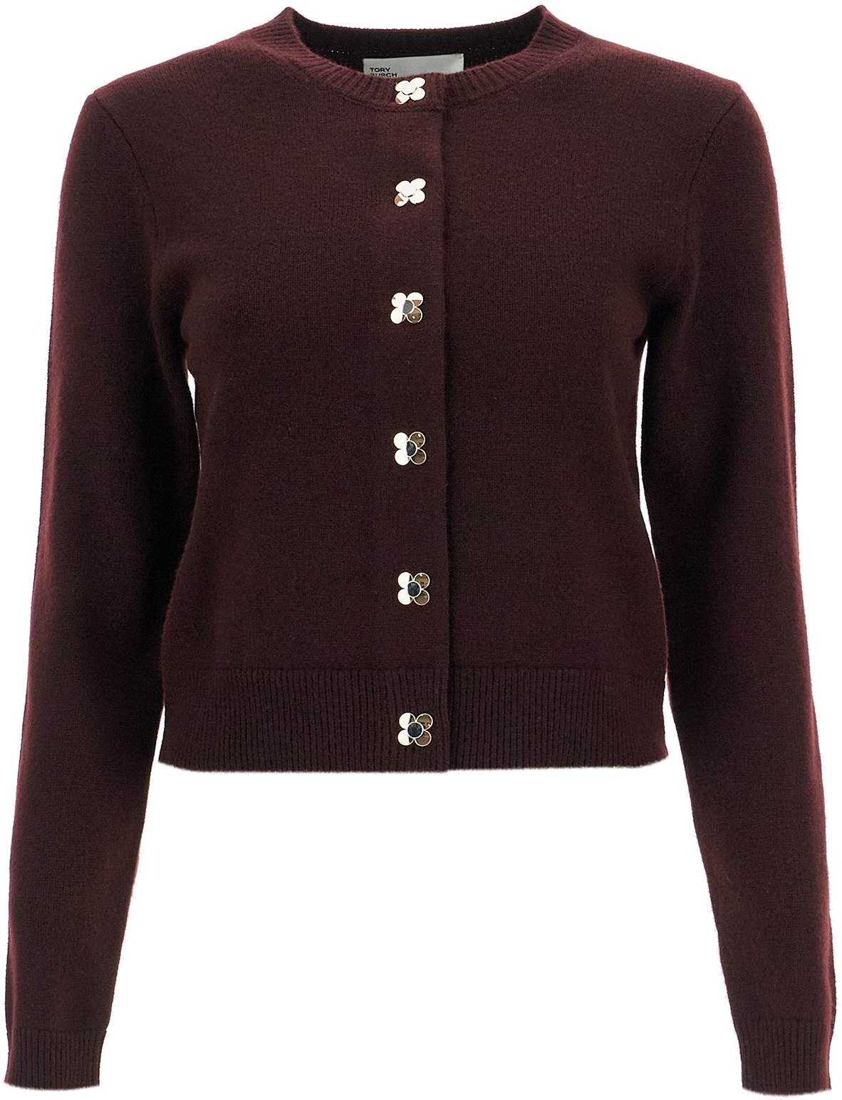 This Tory Burch cardigan is made of cashmere knit with a crew neck and ribbed edges, embellished with jewel buttons. Regular fit. The model is 177 cm tall and wears size S.