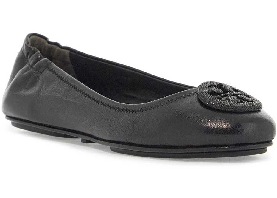 Tory Burch soft nappa ballet flats with the iconic double T logo encrusted with tone-on-tone micro crystals. Elastic back, leather lining, slip-resistant rubber sole.