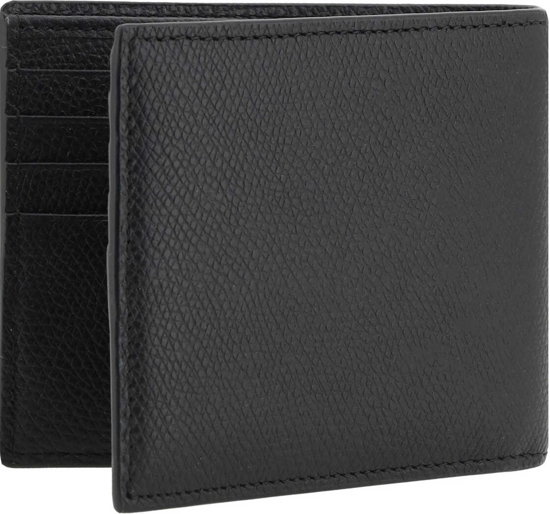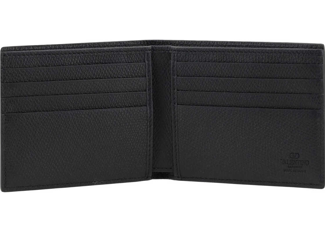 Leather Valentino Garavani Wallet, billfold model, three-dimensional iconic Vlogo brand plaque applied on front, bill compartment, card slot, iconic brand monogram printed in contrasting pressure on interior panel.