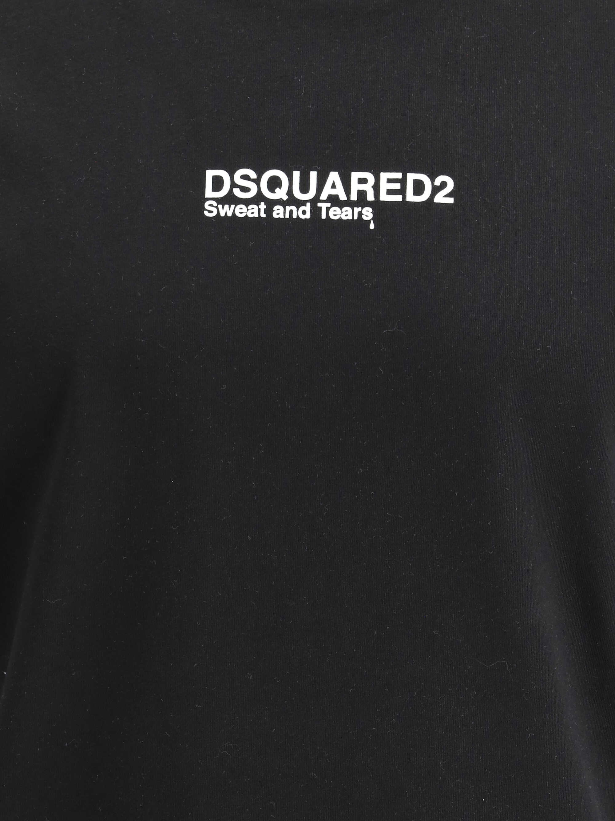 Cotton T-Shirt by Dsquared2, ribbed crew neck, contrasting iconic brand monogram on front, monochrome pattern, regular fit.