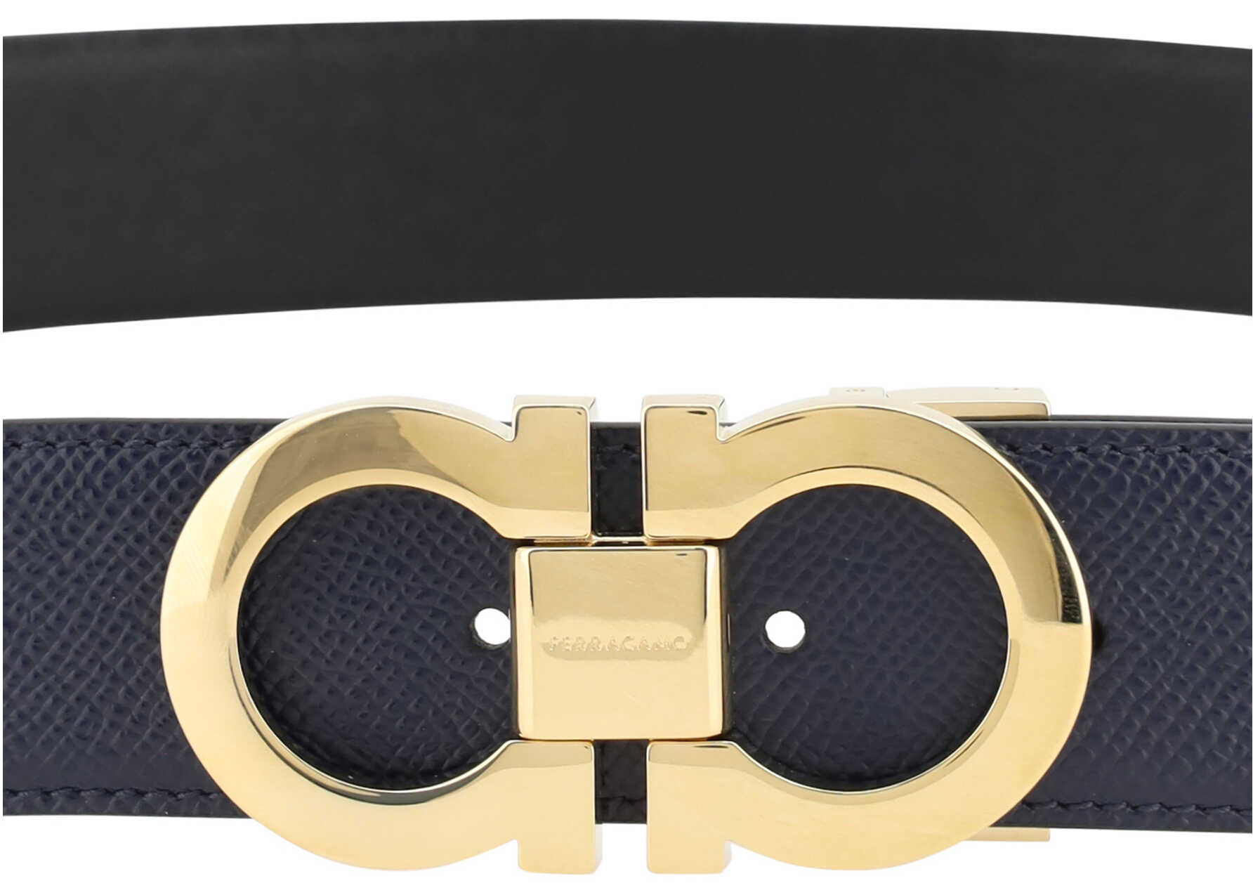 Leather Reversible Belt by Ferragamo, grained leather design, three-dimensional buckle with the brand's iconic Gancini logo, monochrome double-face design. Thickness: 3 cm.