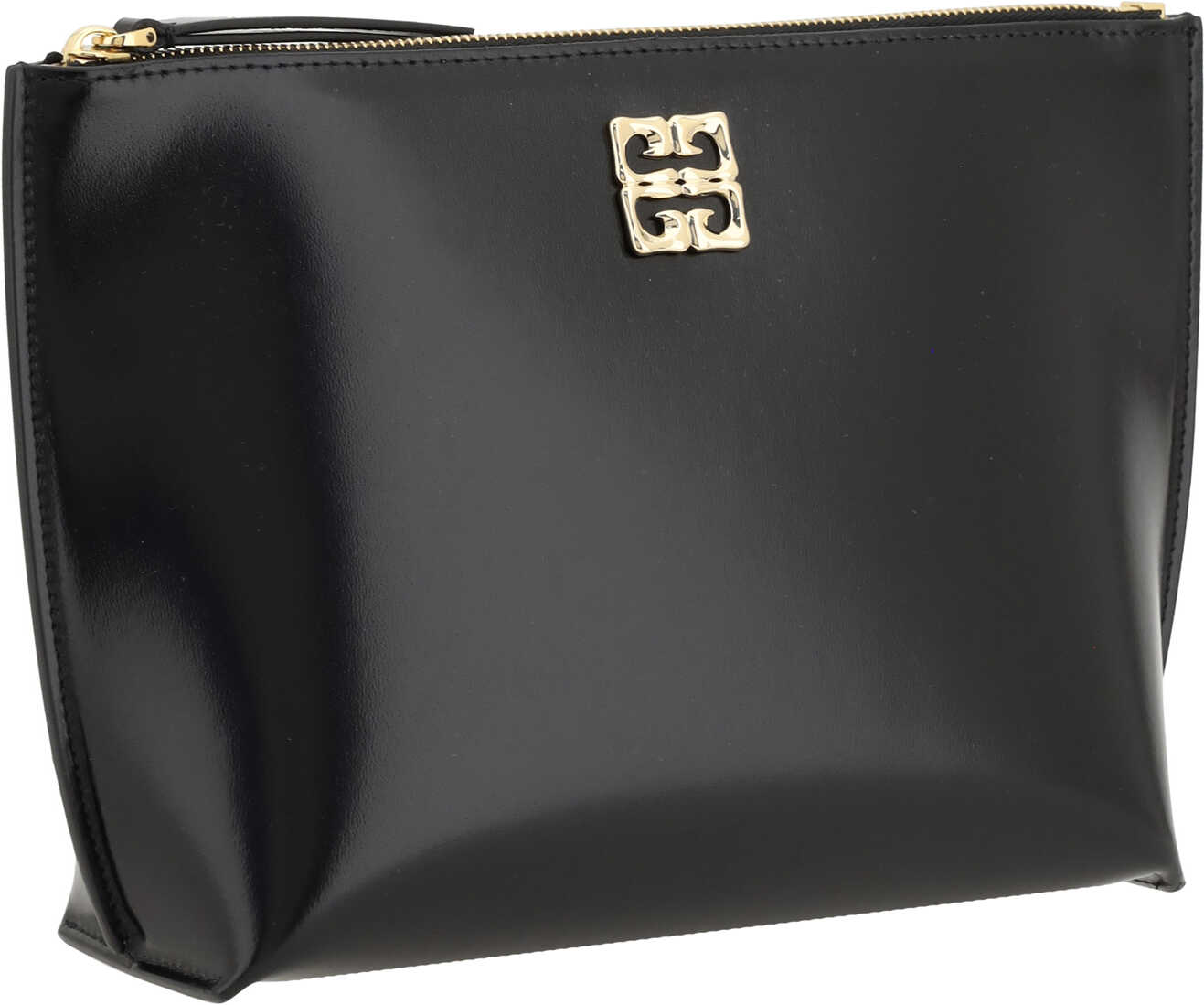 Leather Beauty Case by Givenchy, top zipper closure, smooth leather design, iconic brand logo applique on front, iconic dl brand monogram press-stamped on back.