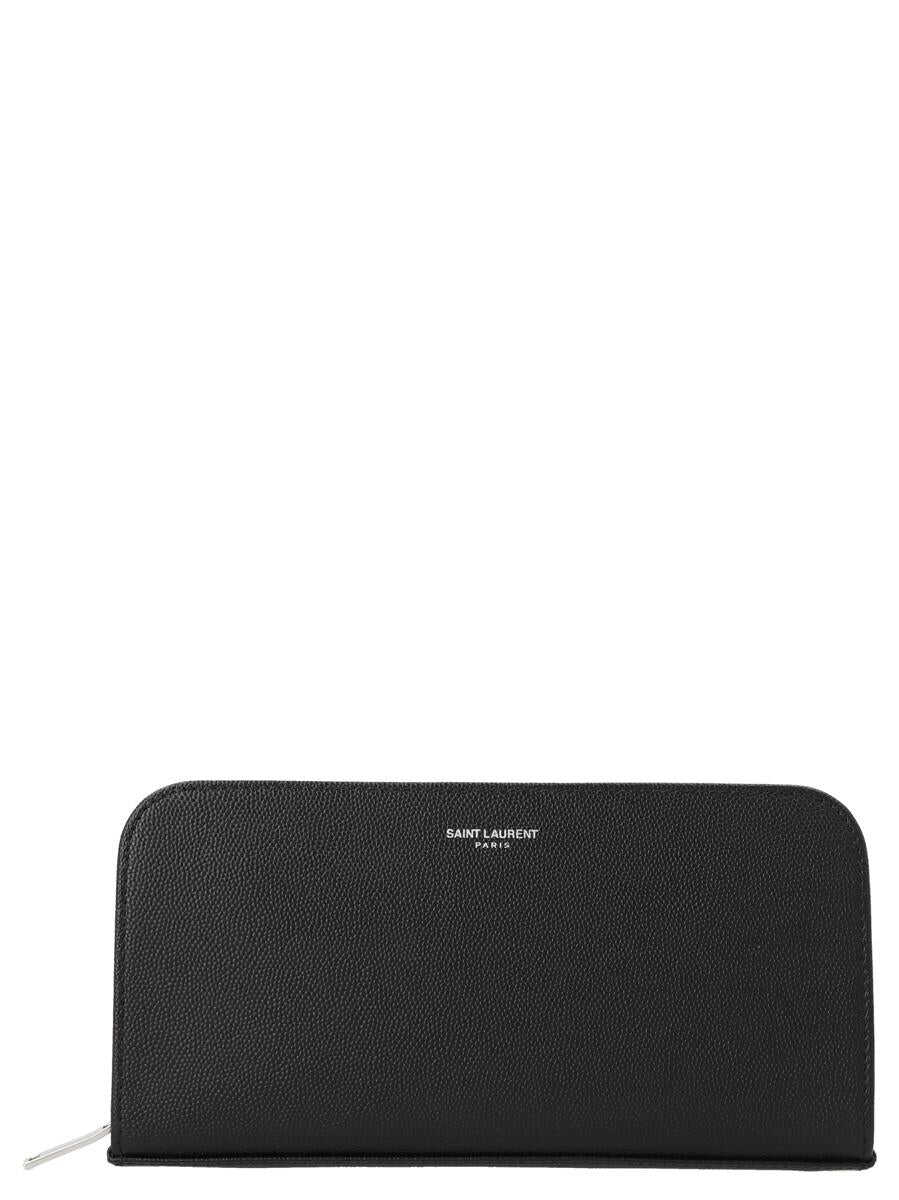 Saint Laurent Paris' leather wallet with zip closure and front logo print
