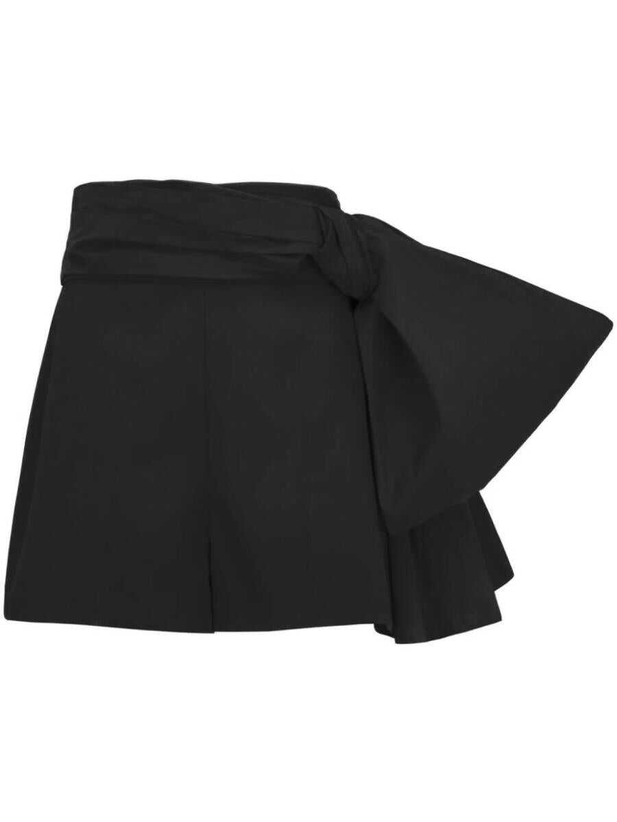 black wool tailored design pintuck detailing dart detailing oversize bow detail high-waisted pressed crease concealed side zip fastening rear welt pocket straight leg above-knee length