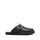 Black calf leather faux-shearling lining round toe logo-buckle detail eva midsole flat rubber sole