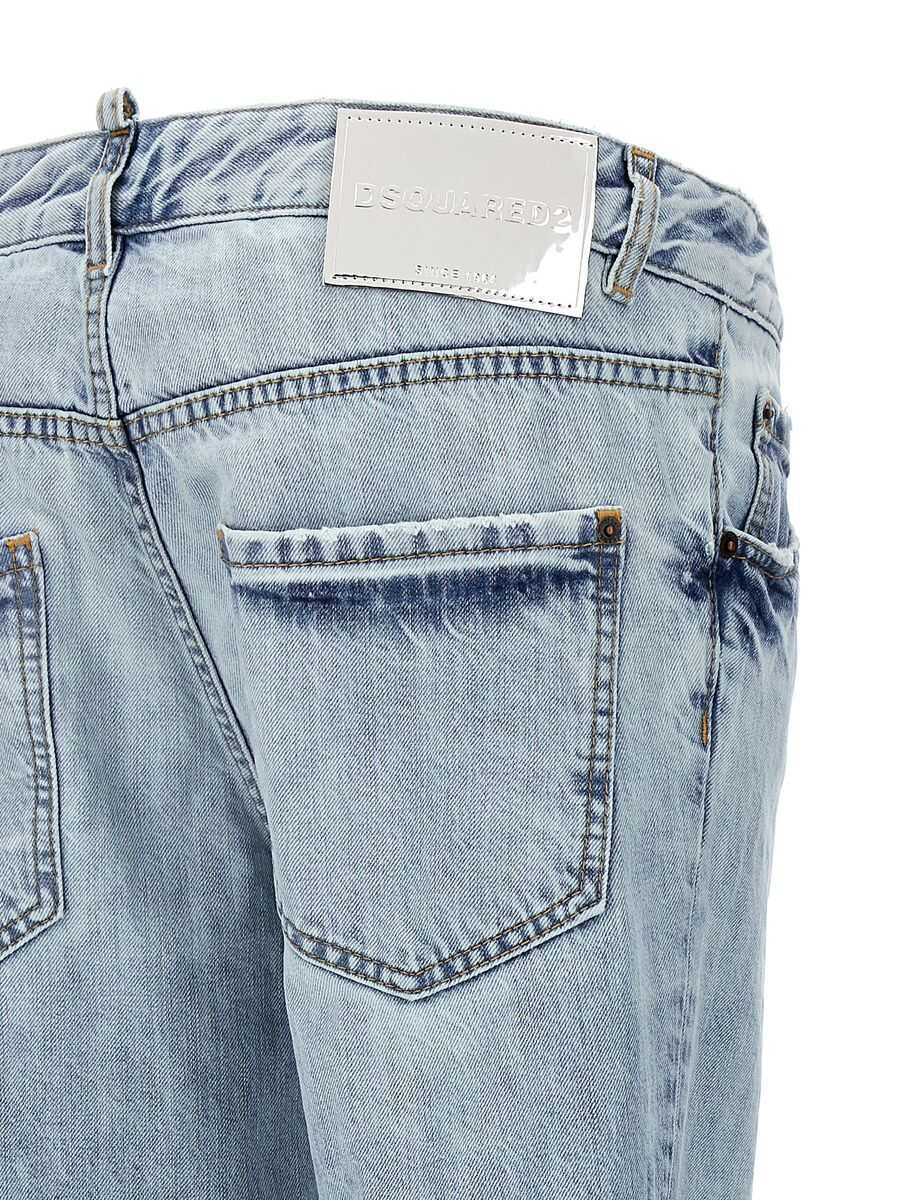 'Cool Girl' cotton denim jeans with distressed details, button closure, five pockets, metal leather logo tag