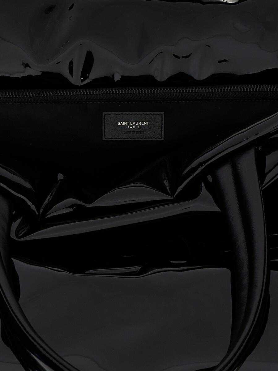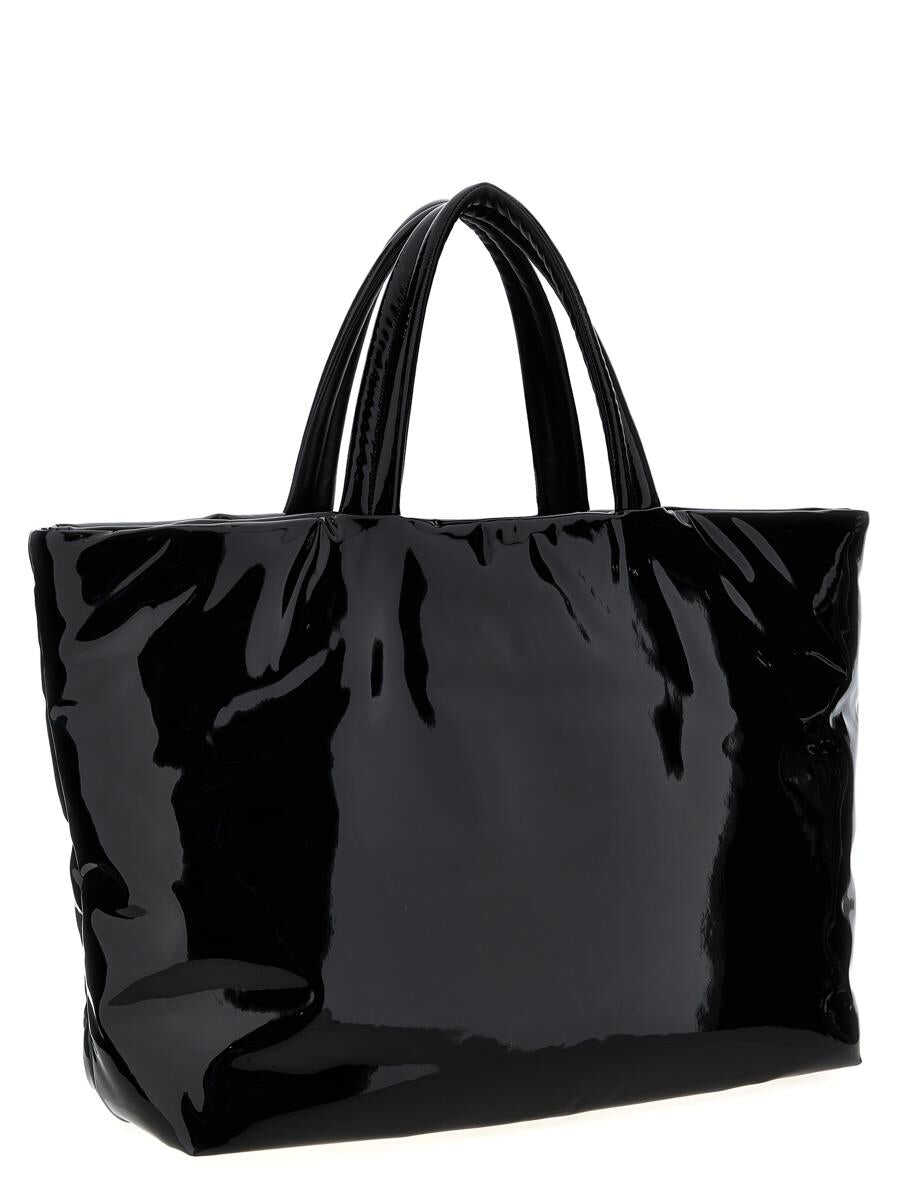 Maxi handbag in patent canvas, leather interior, embossed front logo, zip pocket, handles