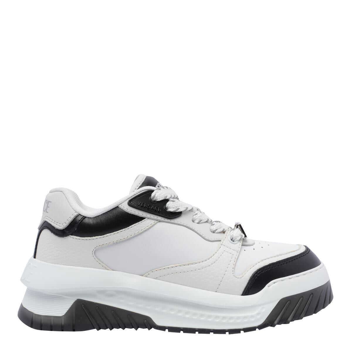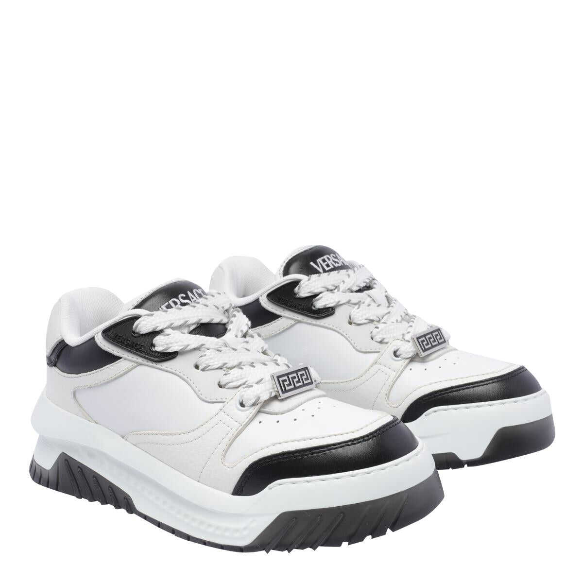 Versace Black And White Odissea Sneakers, Round Toe, Leather Upper, Logo On The Back, EU SIZE (IT)