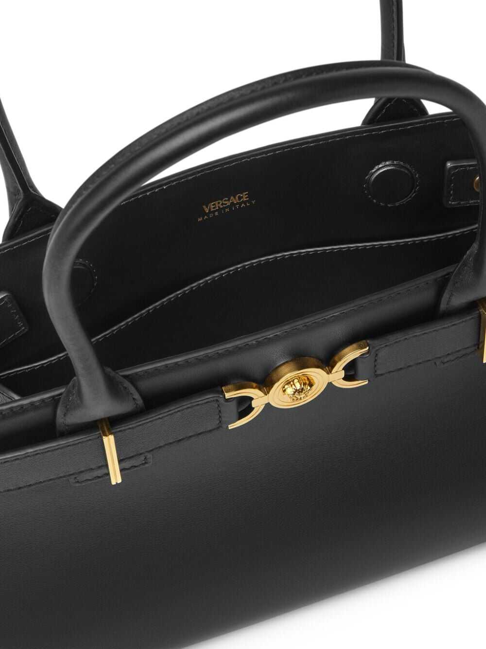 Elevate your style with this stunning Versace handbag in classic black. Made with high-quality materials, this luxurious piece is perfect for any occasion. Stand out from the crowd and make a statement with this elegant and timeless accessory. Add a touch of sophistication to your outfit and make heads turn wherever you go. Get yours now and experience the luxury of Versace.