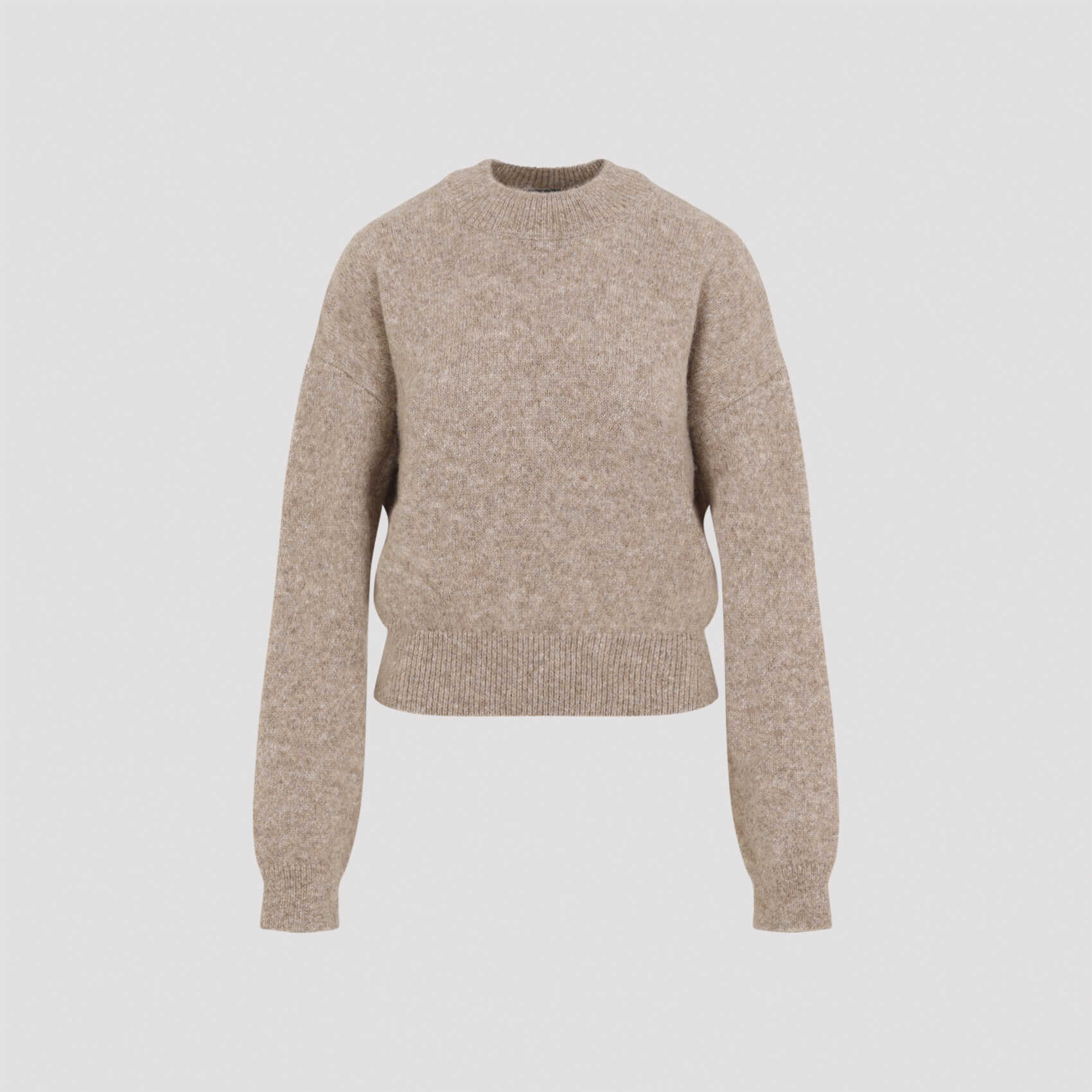 Elevate your style with the Jacquemus beige alpaca wool La Maille pullover. This luxurious sweater features a unique blend of alpaca wool, polyamide, and wool for ultimate comfort and style. With its cropped design and elegant details, it's the perfect addition to your wardrobe. Stay cozy and chic in this must-have piece.