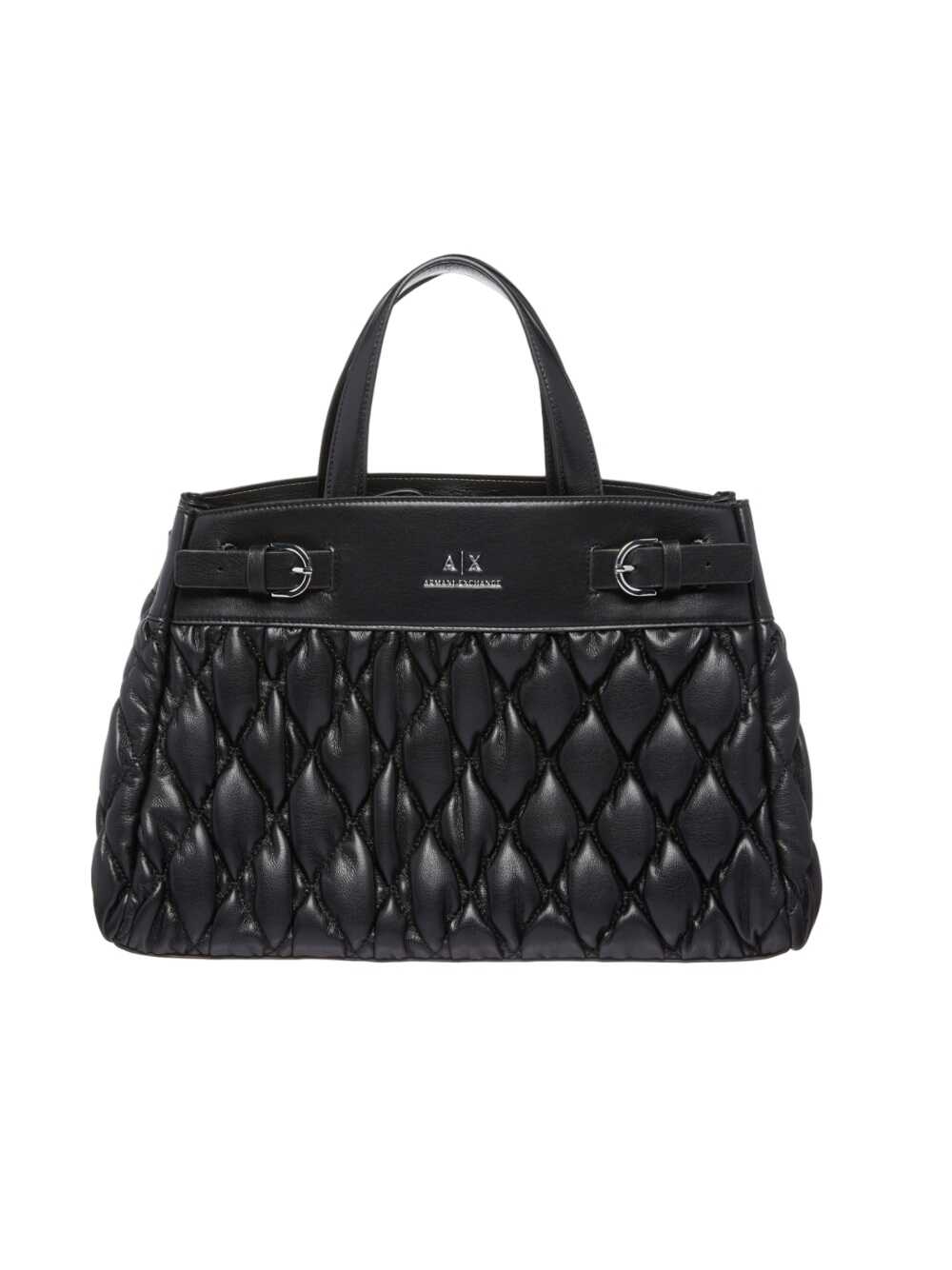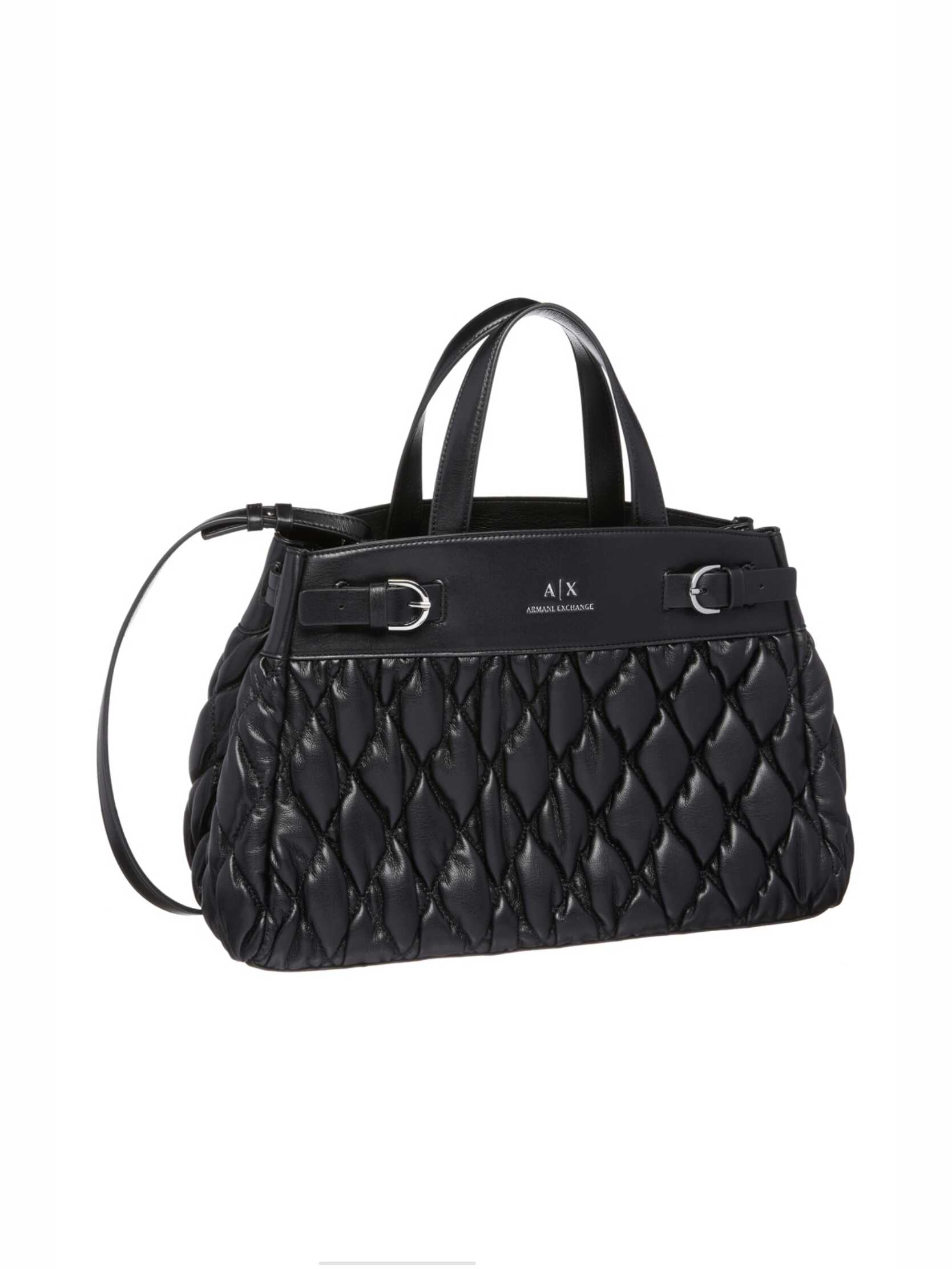 Elevate your style with this chic black Bag from ARMANI EXCHANGE. Made from 100% Polyester, this versatile handbag is perfect for the autumn-winter season. With non-adjustable handles, a removable shoulder strap, and multiple compartments, it offers both functionality and fashion. Add this statement piece to your collection today!