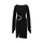 Tom Ford Jersey Asymmetric Black Viscose Dress. Black viscose blend, boat neckline, long sleeves with asymetric cuffs, black insert on front with lamb leather belt, arymmetric hem.