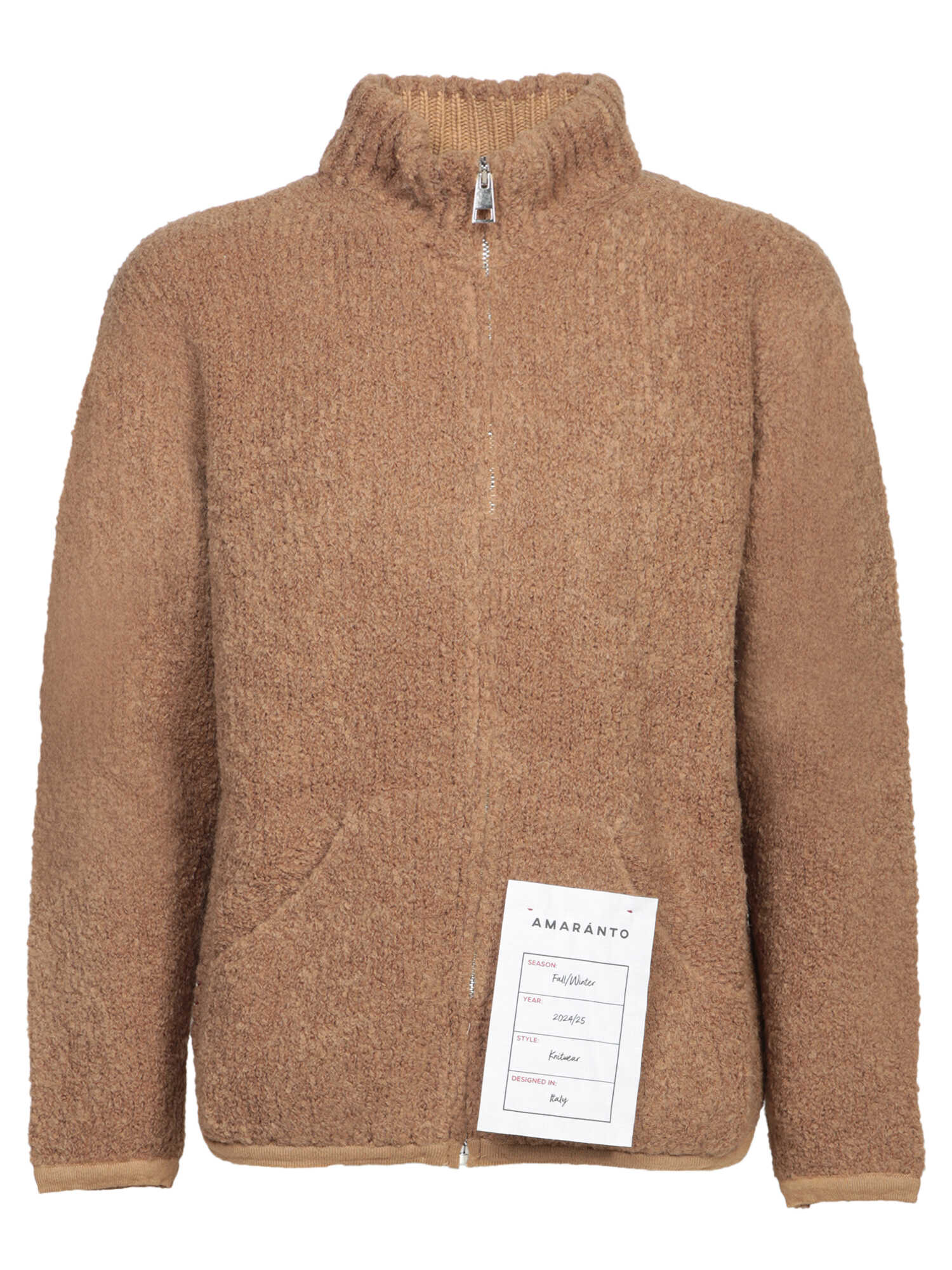 Discover the AMARANTO Brown Cardigan, crafted from 100% wool for warmth and style. The high collar and full zipper offer versatility, while the soft teddy fabric ensures comfort. Elevate your wardrobe with this chic and practical essential!