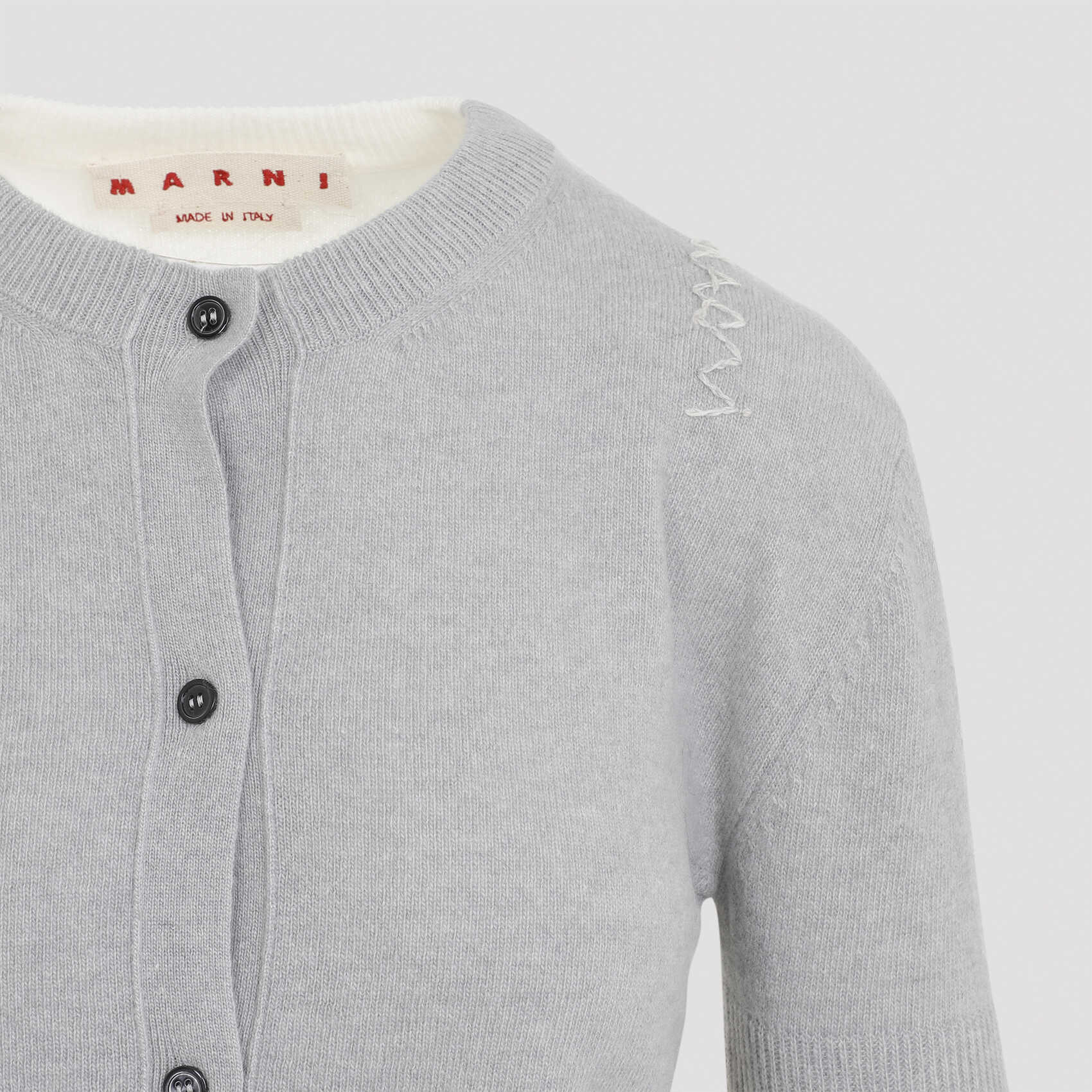 Stay cozy and stylish in this luxurious Grey MARNI sweater. Made with a blend of 70% virgin wool and 30% cashmere, this sweater is perfect for any occasion. Add a touch of class to your wardrobe with MARNI.