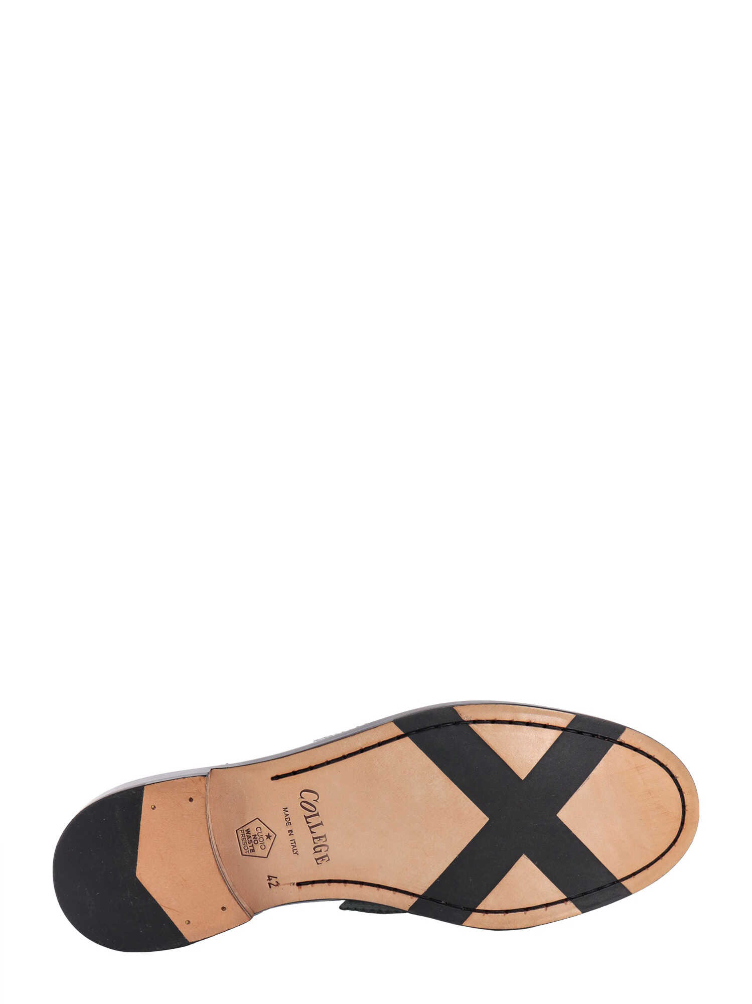 Step up your shoe game with these Leather Loafers from COLLEGE. Made in Italy, these loafers feature a stylish iconic print that is sure to turn heads. The leather exterior and sole ensure durability and comfort, while the EU size range accommodates a variety of foot sizes. Perfect for any occasion, these loafers are a must-have for any fashion-forward man. Order now and elevate your style to the next level.