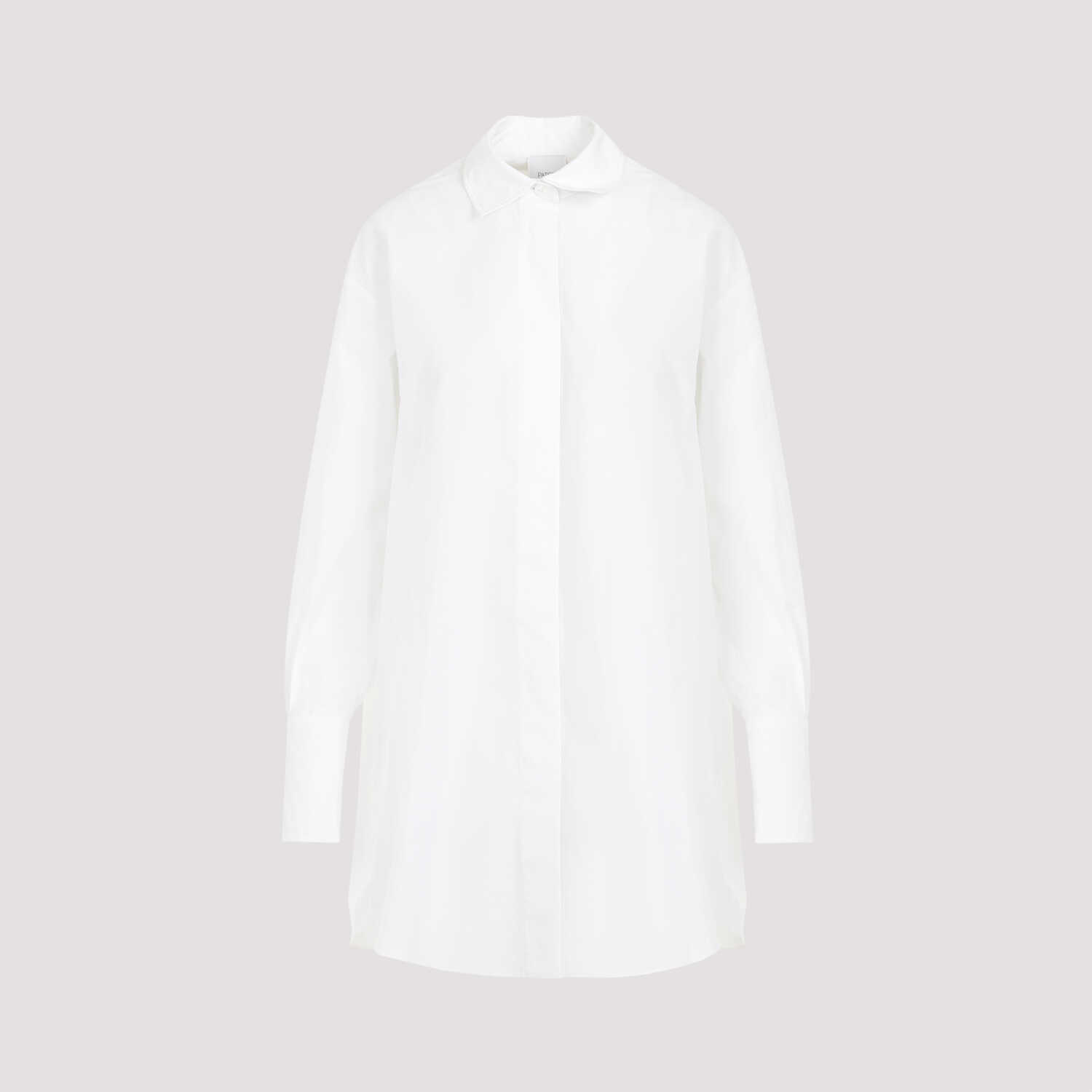 Patou White Cotton Mini Shirt Dress. Crafted in pure white cotton. Pointed collar, long sleeves, buttoned cuffs, front concealed fastening, Patou logo on the back, straight hem.