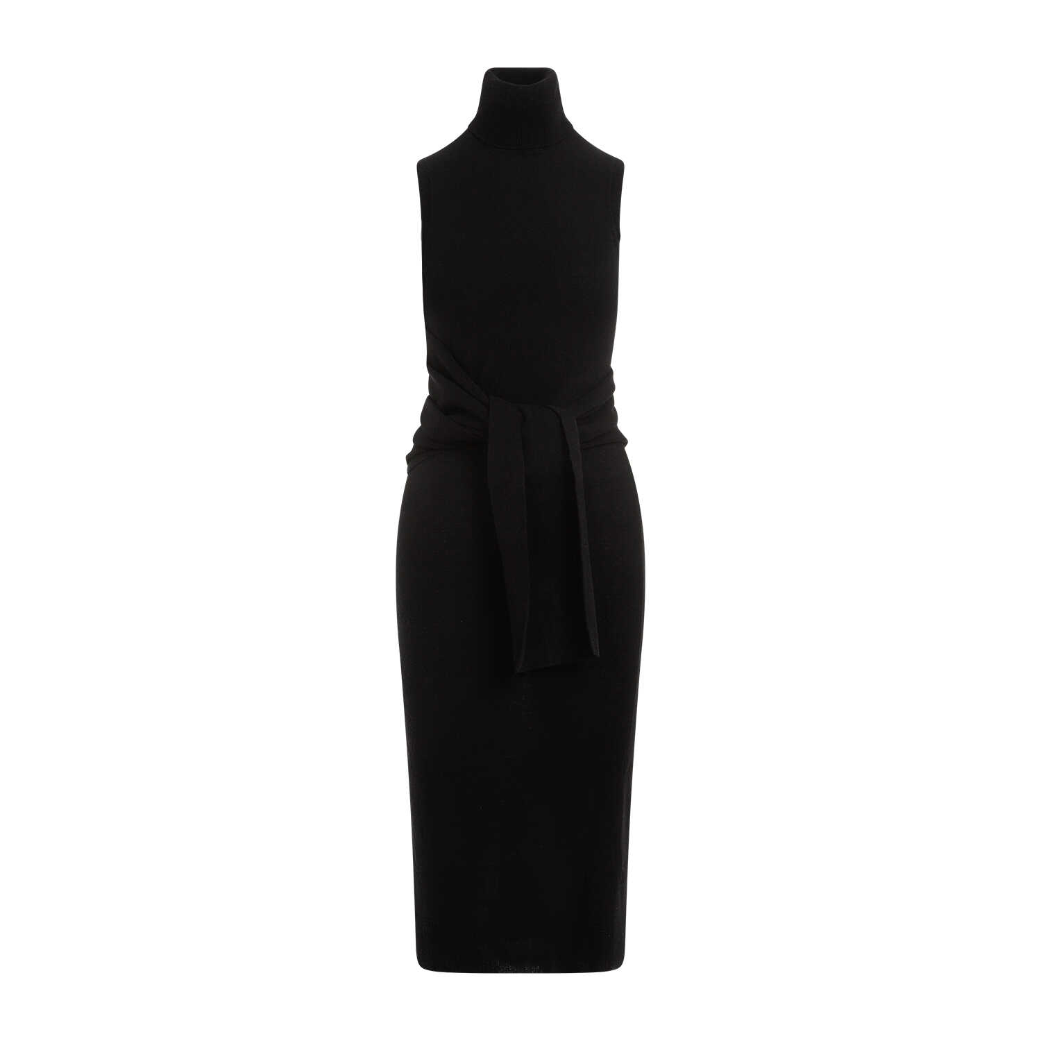 Elevate your style with this chic MM6 Maison Margiela black wool midi dress. Made from a luxurious blend of wool and polyamide, it features a stand-up ribbed collar, sleeveless design, front crossed detail, and a midi-length hem. Perfect for any occasion, this dress exudes sophistication and elegance. Add this timeless piece to your wardrobe today!