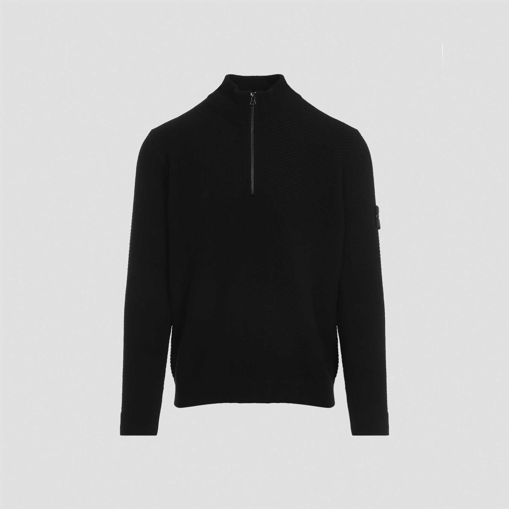 Stay warm and stylish with this sleek black Stone Island sweater. Made from 100% virgin wool, this sweater is a must-have for any fashion-forward man. Elevate your wardrobe with this premium piece from Stone Island.
