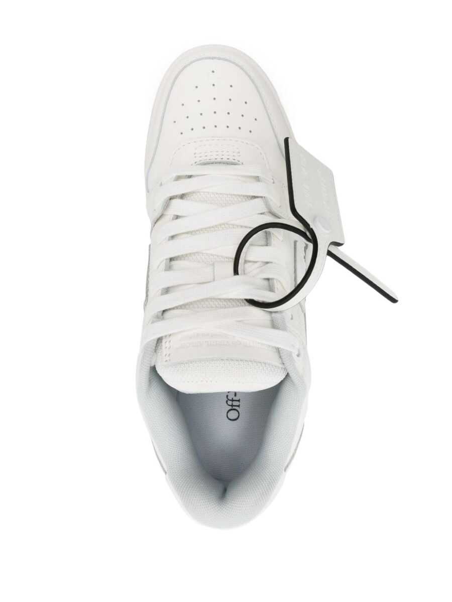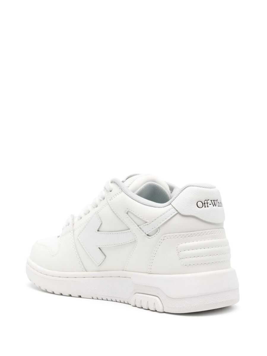 white calf leather detachable leather logo tag signature Arrows motif slogan print to the side logo-debossed tongue branded heel counter perforated toebox front lace-up fastening round toe branded insole flat rubber sole