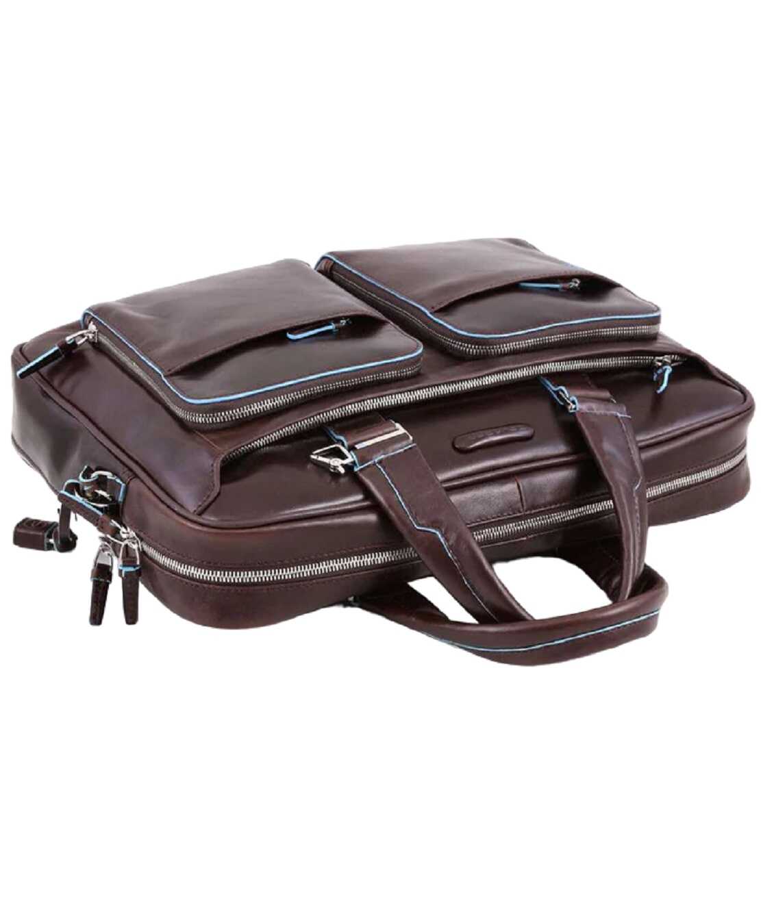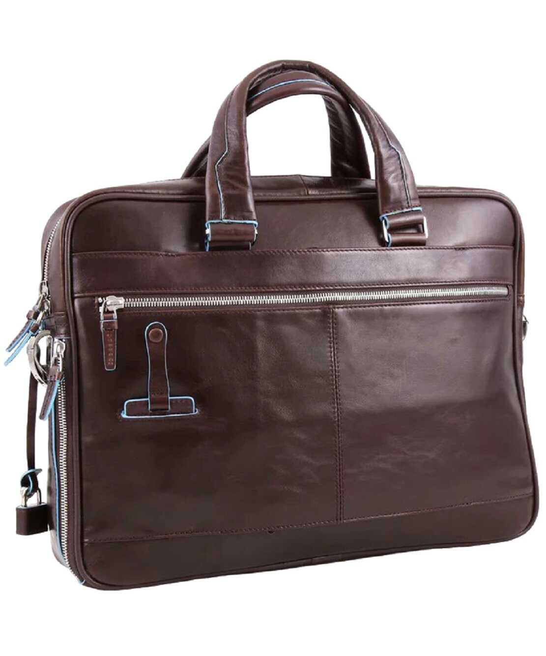 Stay organized and stylish with the Dark Brown Briefcase By Piquadro. Made of premium leather, this unisex handbag features a dedicated compartment for your iPad 10.5, u-zip front pockets for easy access, and measures 39x28.5x10cm. Weighing only 1.32 kg, it's the perfect blend of functionality and fashion.