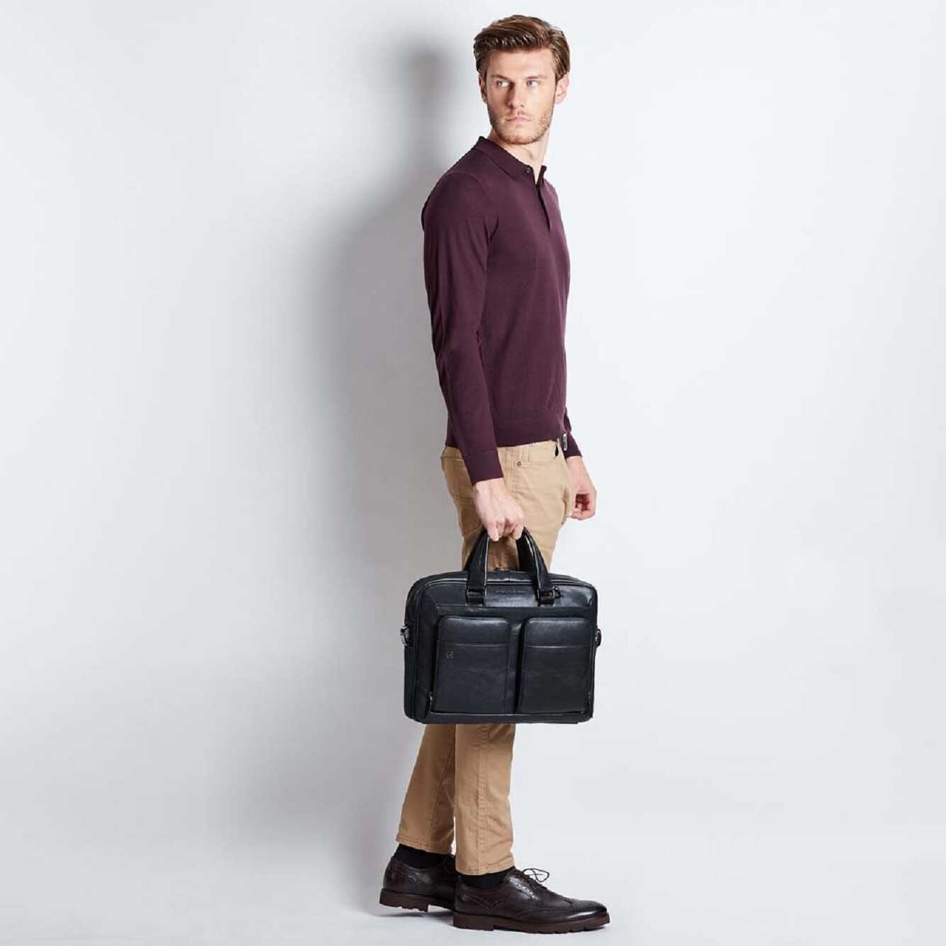 Experience the ultimate in style and functionality with the Two Handles Briefcase Piquadro. Made from 100% premium leather, this soft, horizontal bag is perfect for your computer and iPad. With multiple compartments, including a padded notebook compartment, you can keep everything organized. The detachable shoulder strap and fixed handles make it easy to carry. Additional features include a credit card holder, key holder, cell phone pocket, bottle holder, and more. Perfect for both men and women, this bag is sure to impress.