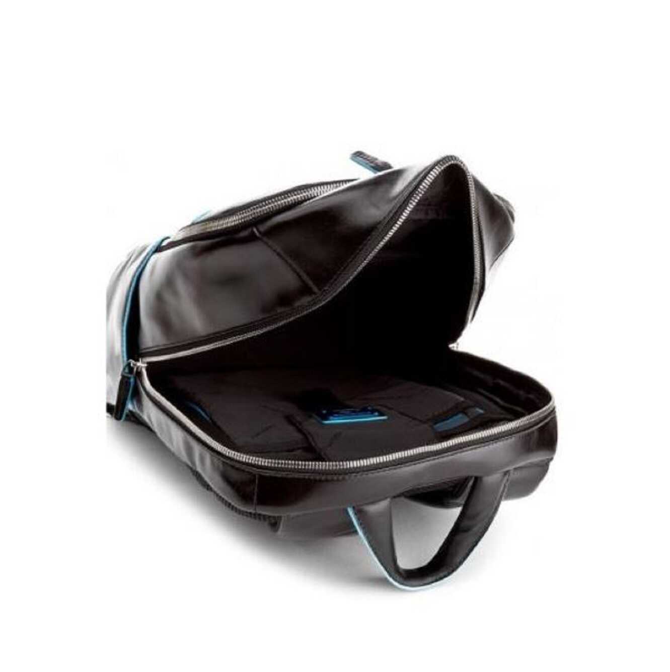 Carry your laptop and essentials in style with the PIQUADRO backpack. Made from 100% leather, this backpack features a padded compartment for your 14 notebook and a neoprene PC holder. The backpack also has a smart tracker and an internal cell phone pocket. With a trolley attachment system and adjustable straps, this backpack is perfect for your daily commute. Available in black.