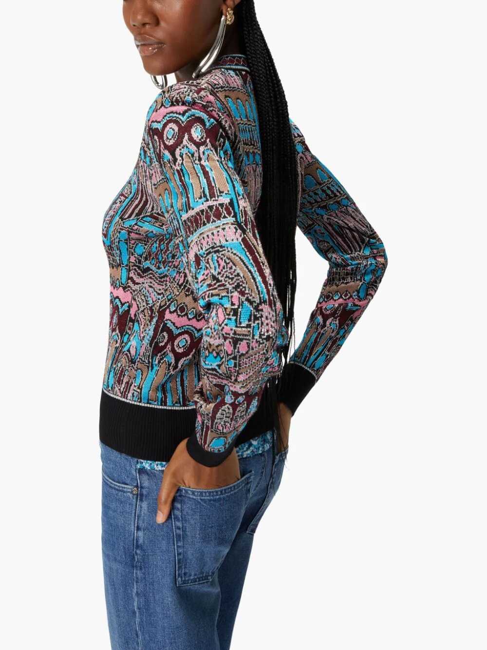 Stay cozy and stylish in this vibrant orange Crewneck Sweater from MISSONI. Made from a luxurious blend of Viscose, Wool, and Metallic fibers, this sweater is perfect for adding a pop of color to your winter wardrobe. With its classic crewneck design, this sweater is a must-have for any fashion-forward woman. Elevate your knitwear collection with this chic and comfortable piece.