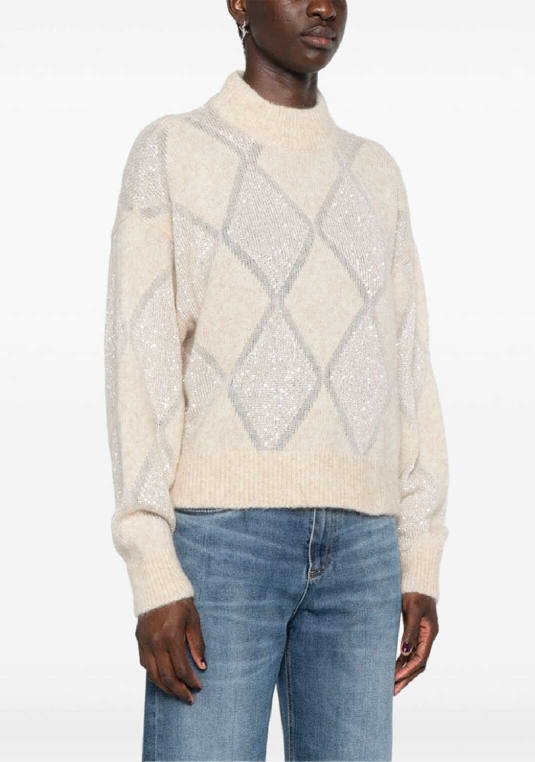 Stay cozy and stylish in this luxurious High Neck Sweater from BRUNELLO CUCINELLI. Made from a blend of 60% Wool and 40% Cashmere, this Light Grey sweater is perfect for adding a touch of elegance to your winter wardrobe. With its timeless design and superior quality, this sweater is a must-have for every fashion-forward woman. Order yours now and elevate your knitwear collection!