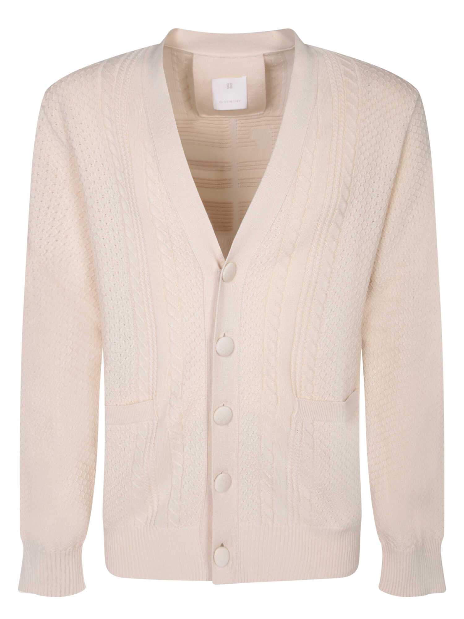 Stay stylish and comfortable in this classic White GIVENCHY Cardigan. Made from 100% Cotton, this high-quality sweater is perfect for any occasion. Elevate your wardrobe with this timeless piece from the iconic GIVENCHY brand.