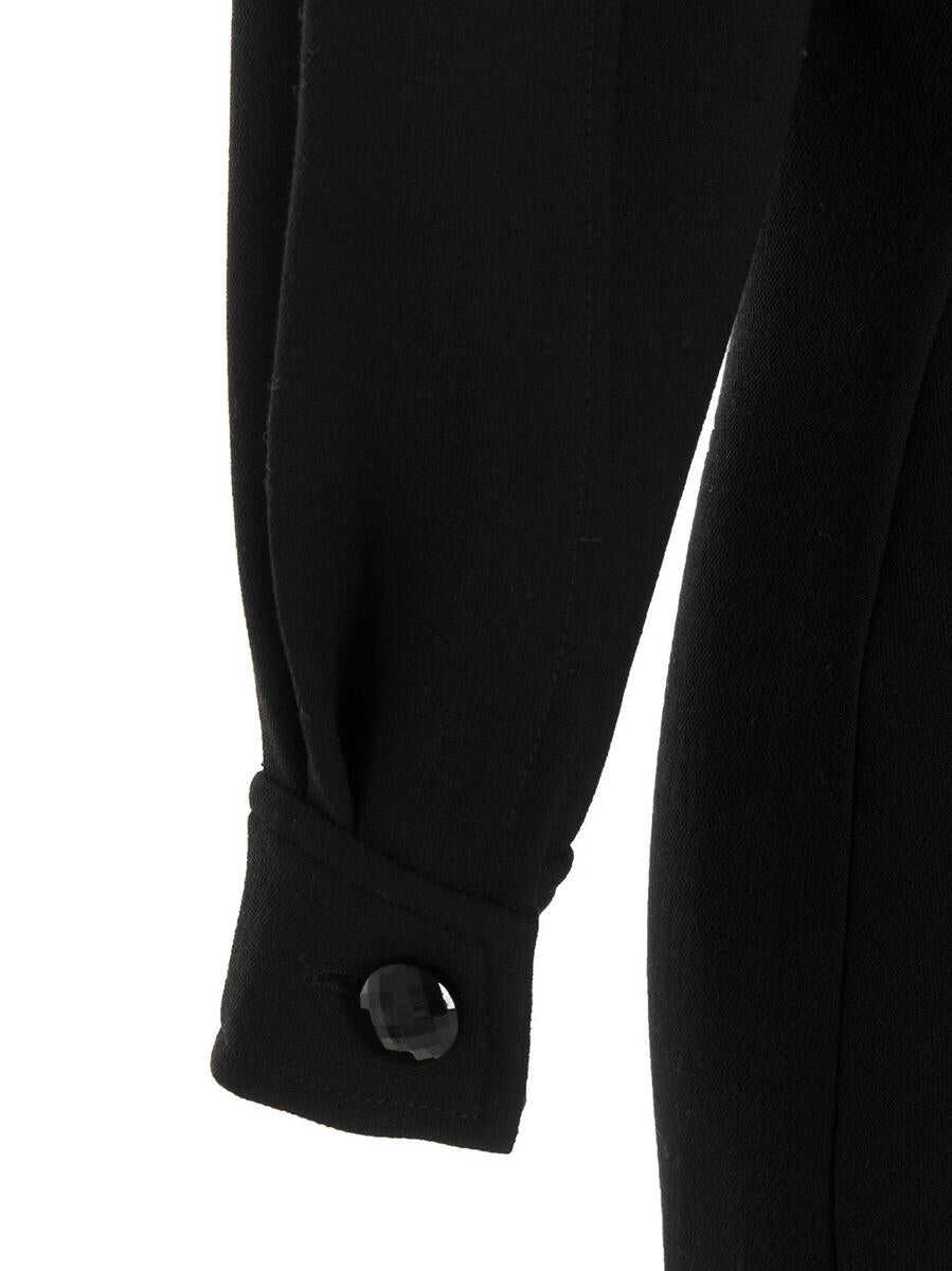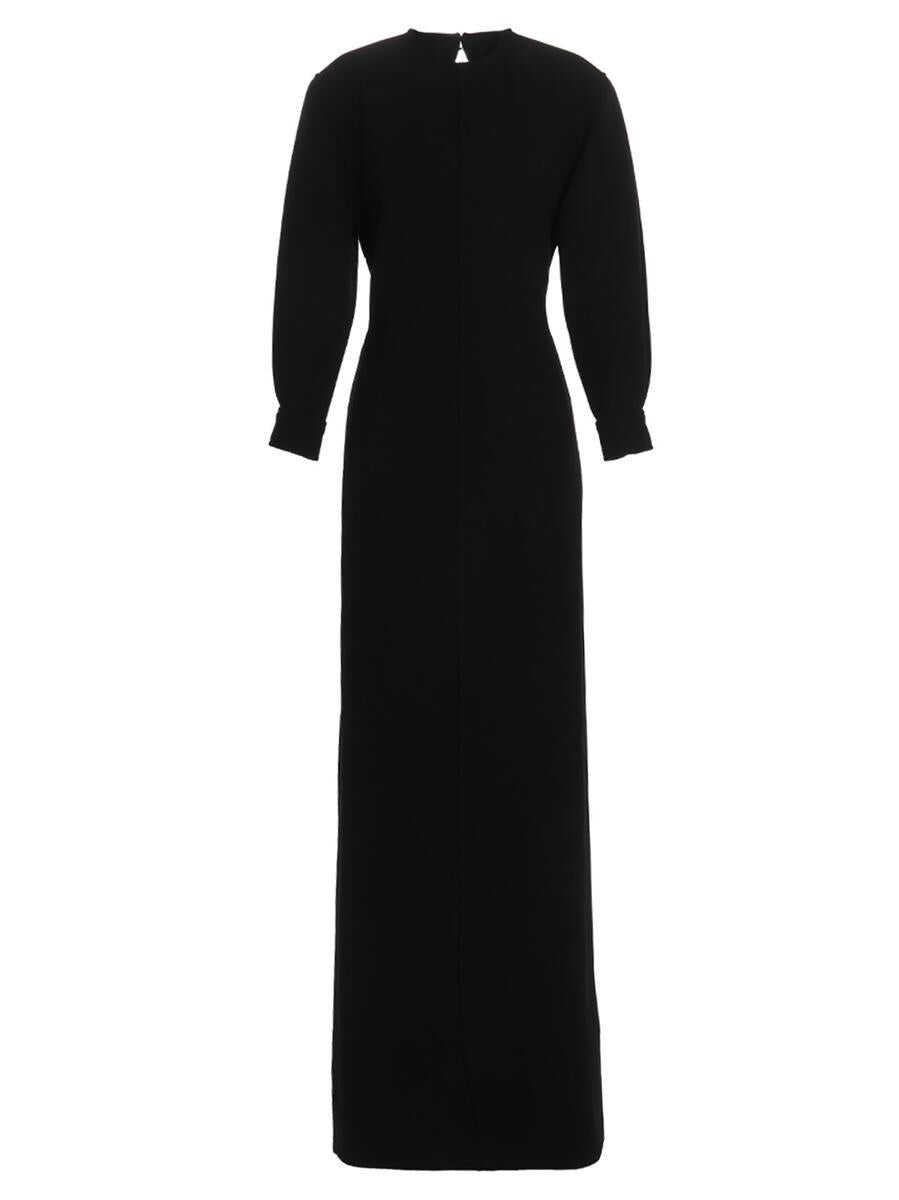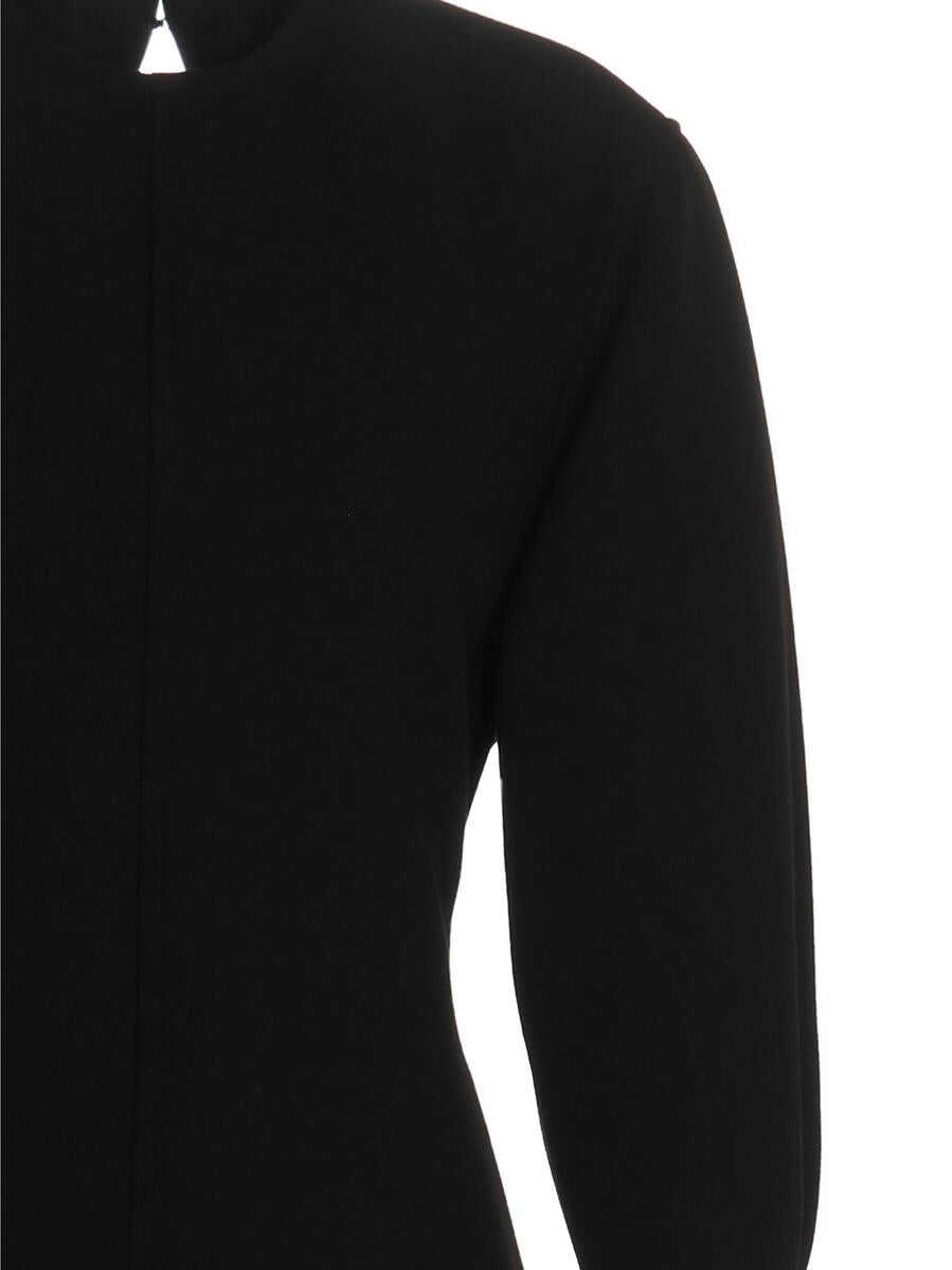 ‘Armure Lourd' double crêpe wool dress with open back detailing, a bow on the back, a hook closure on the neck and a zip at the back, long sleeves, back vent, and padded shoulders