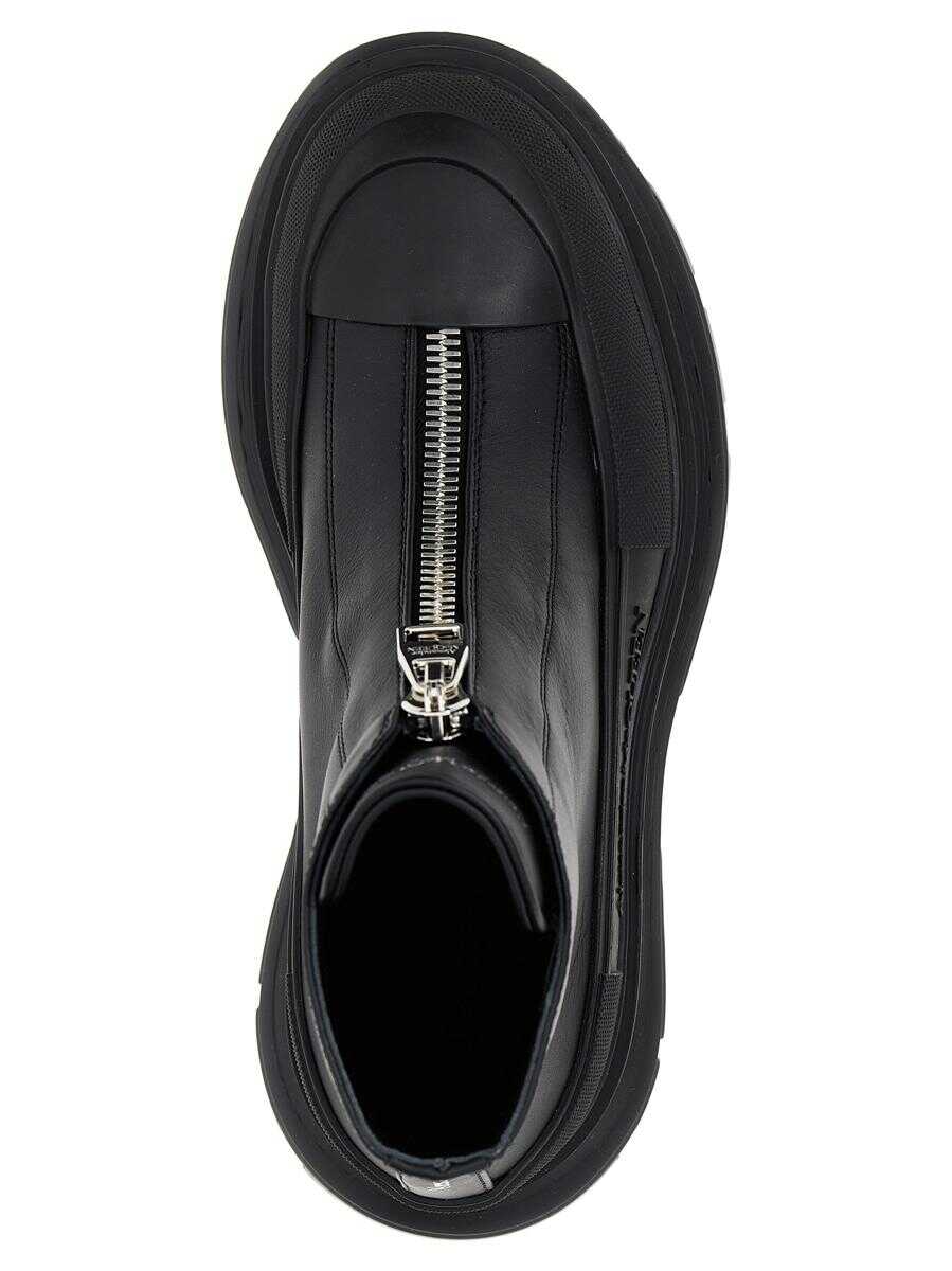 'Zip Tread Slick' leather ankle boots, front zip closure, oversized rubber sole