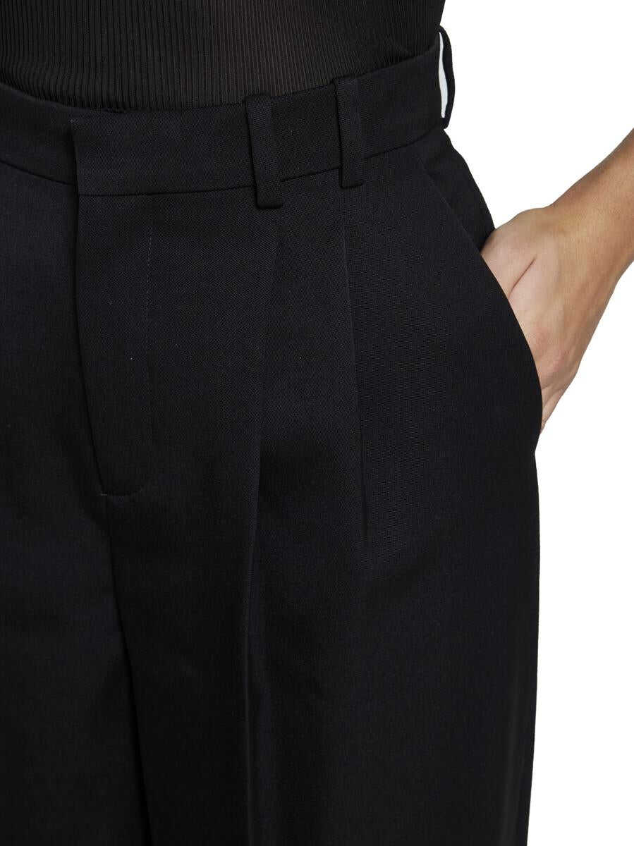 Saint Laurent's black wool tailored trousers featuring high waist, belt loops, concealed button and zip fastening, side pockets, back buttoned welt pockets, double pleats and ironed crease.