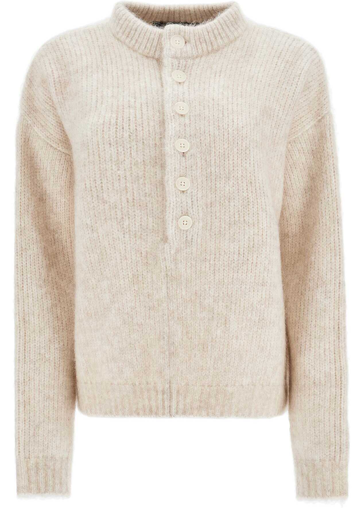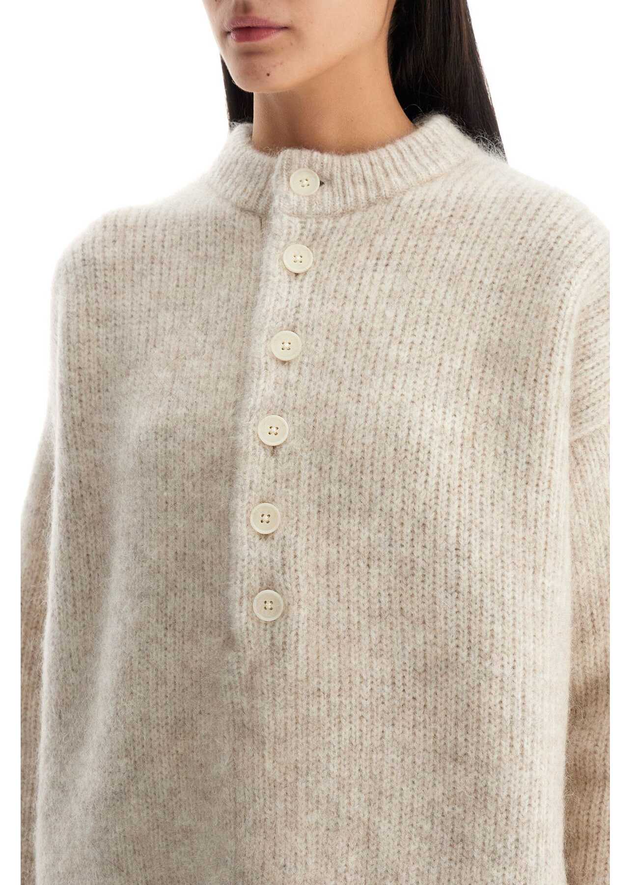Featuring a short and wide cut with dropped shoulders, this Mr Mittens pullover is made from a soft blend of wool and mohair worked in ribbing. It has a round neckline with partial button closure. The model is 177 cm tall and wears size XS/S.