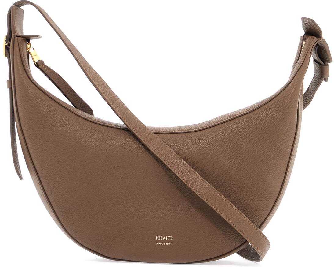 The small Augustine hobo bag by Khaite is made of hammered leather with an adjustable handle, zip closure, and unlined interior. The golden hardware adds a touch of elegance to this versatile piece.