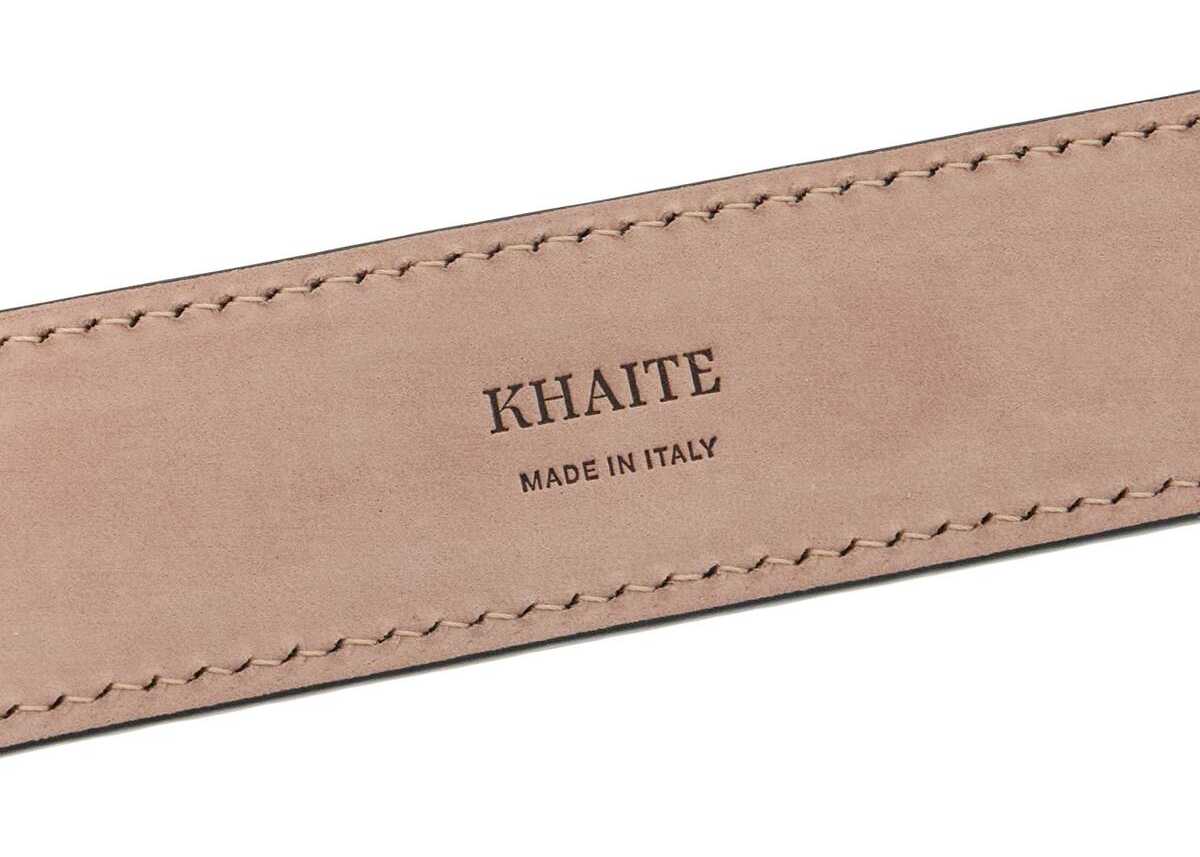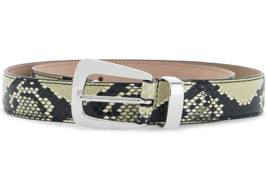 The Khaite Benny belt is made of python leather with a silver metal buckle. The item in the photo corresponds to size 90.