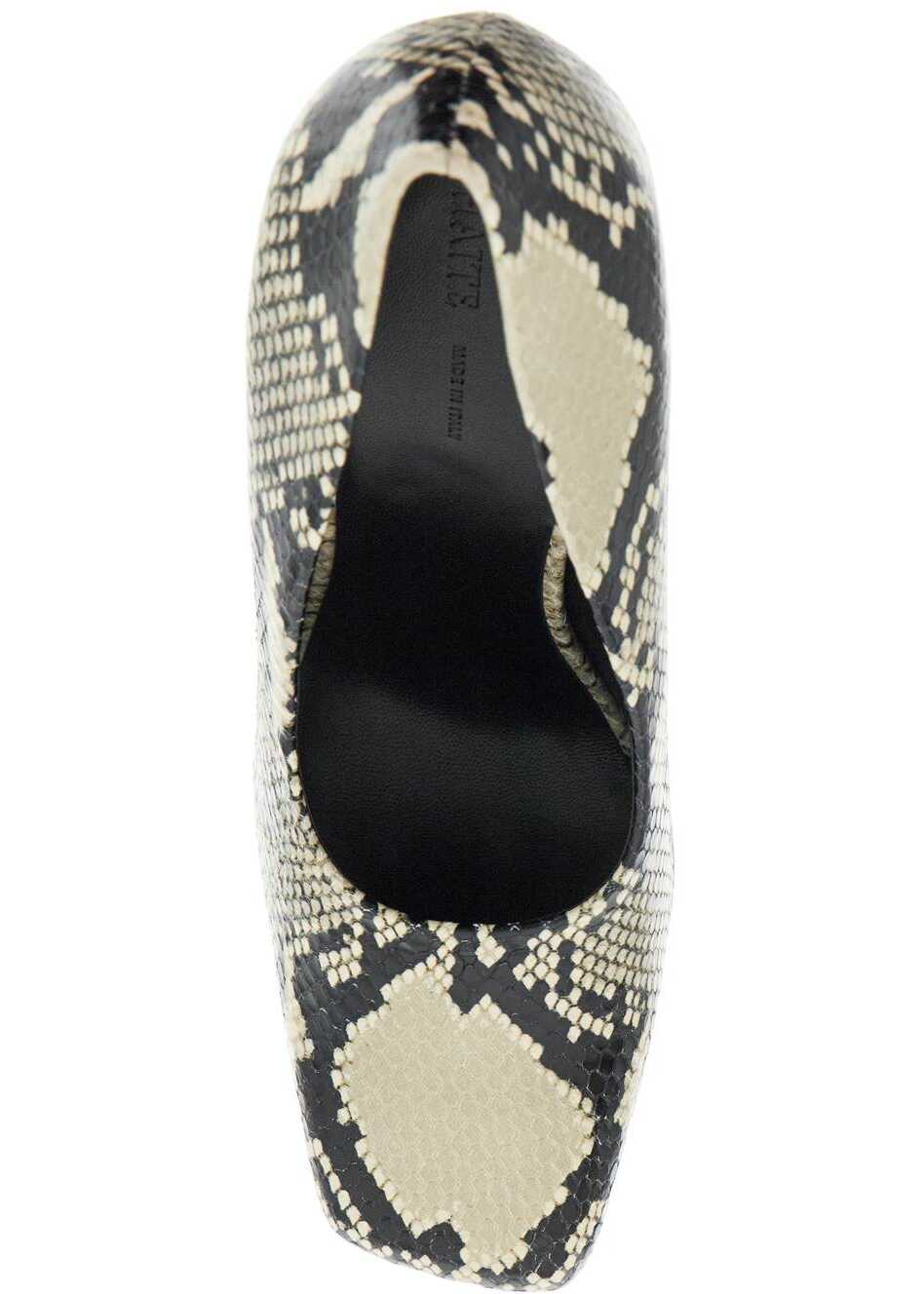 The Eva Dé colleté by Khaite is made of python leather with a square toe, leather interior, and leather sole.