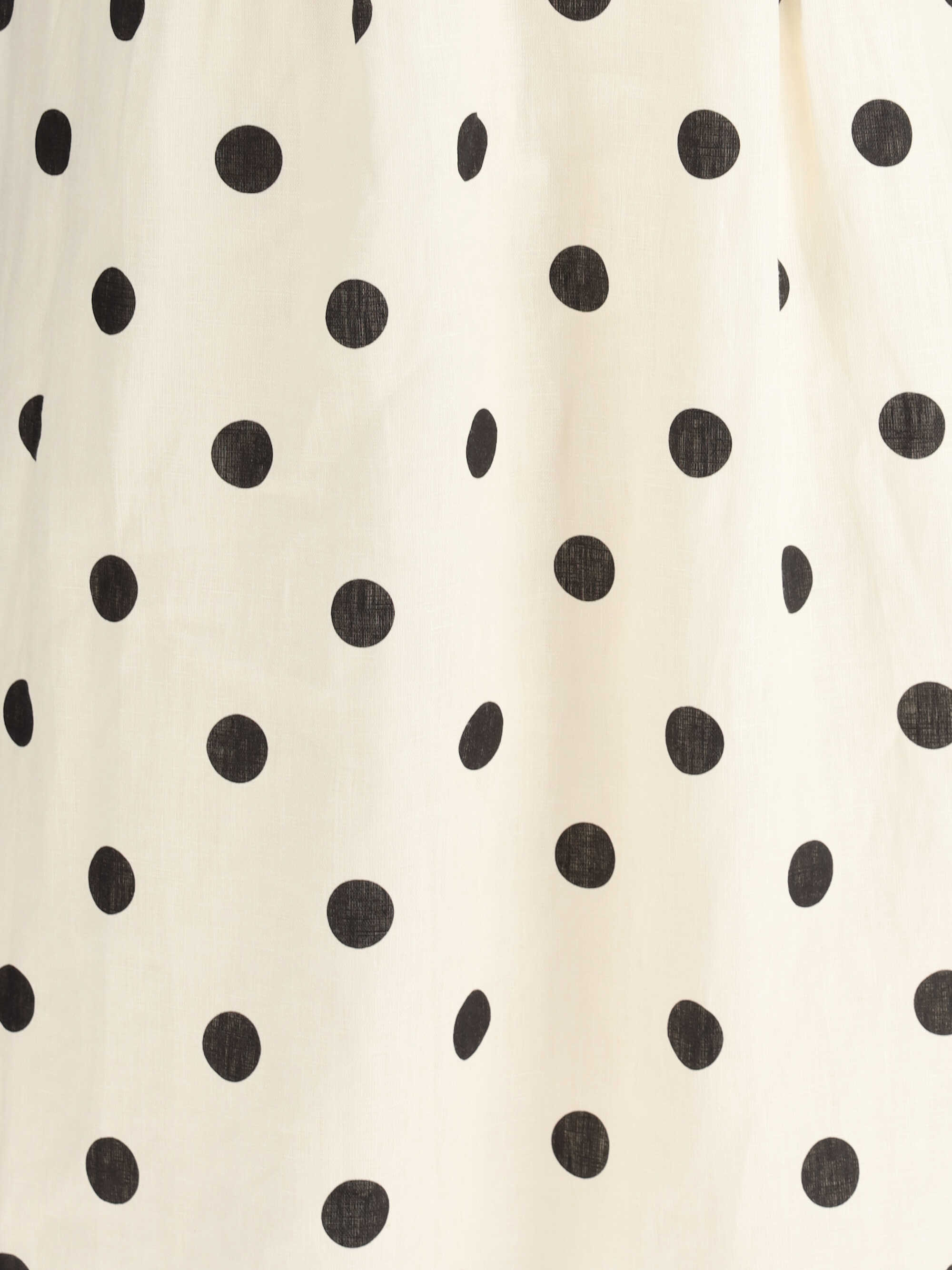 Linen Midi Dress by Zimmerman featuring straps with bow detail, V-neck front and back, back zipper closure, flared skirt, all-over polka dot pattern, regular fit.