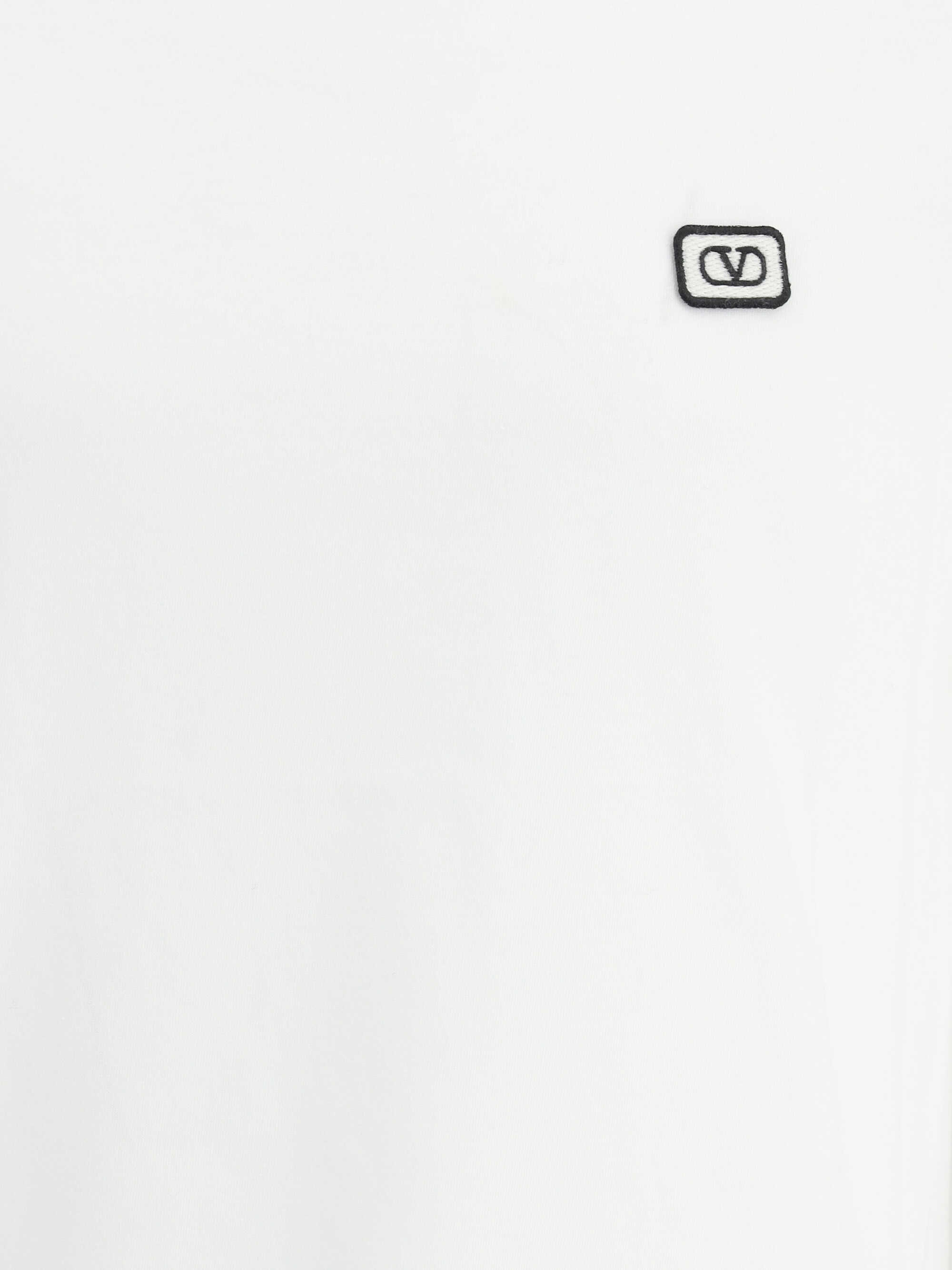 Cotton T-Shirt by Valentino, ribbed crew neck, contrasting applied iconic brand logo patch on front, monochrome pattern, regular fit.