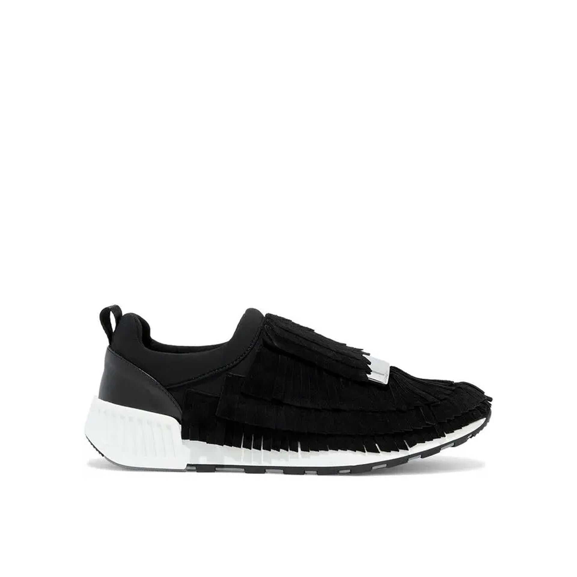 - Composition: 100% Fabric - Inner: Fabric - Insole: Leather - Sole: Rubber - Suede detail - pull tab at the rear - Round toe - Fringe top details - Slip-on design - Top metal logo hardware - Made in Italy - Gender: WOMEN - MPN A85020MFN639400_1000 - Barcode: 8084505324 - Code: SHO SE 2 SK FW24 11319