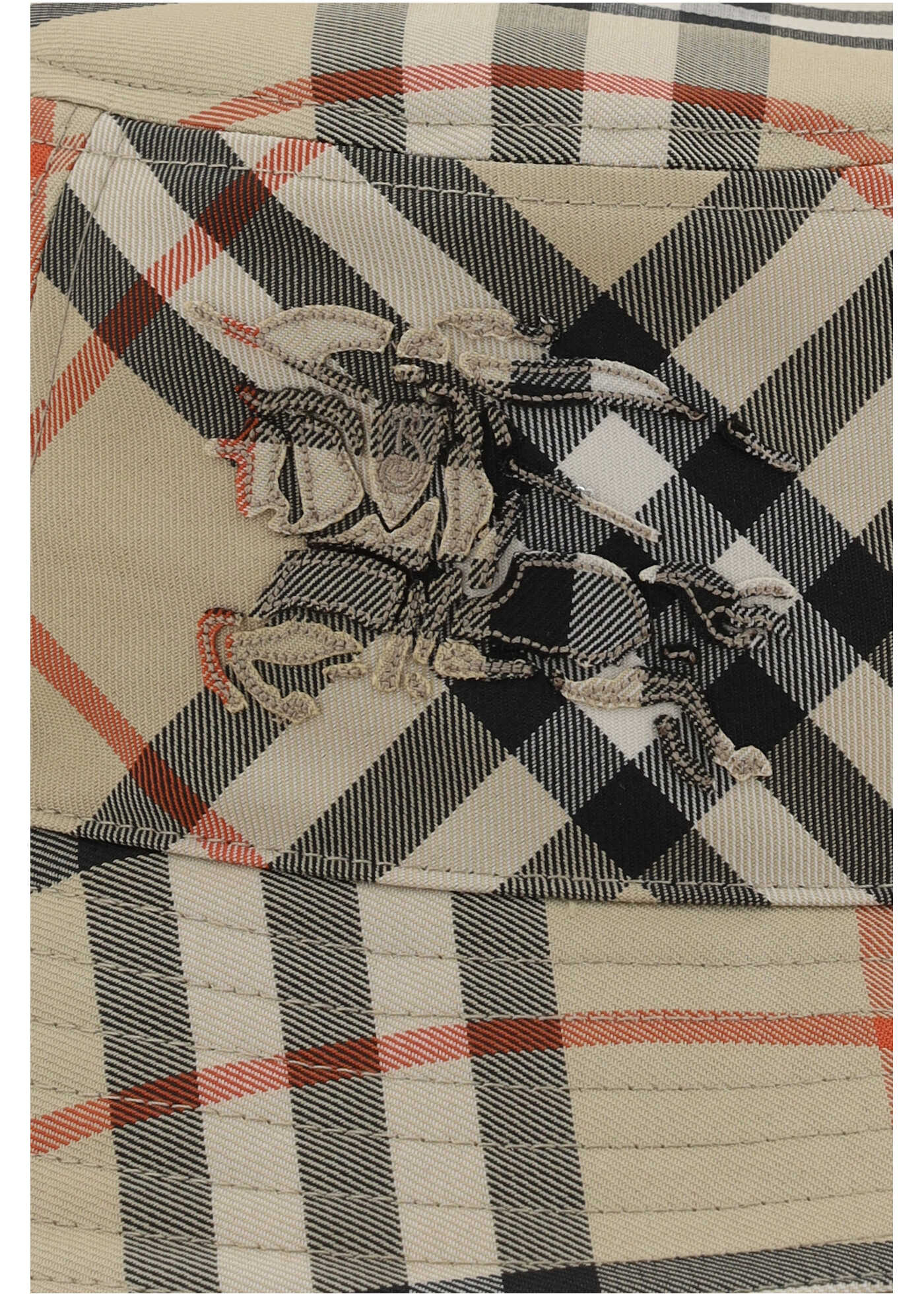 Bucket Hat by Burberry, iconic all-over Check Archive print, Logo The Equestrian Knight embroidered on the front.