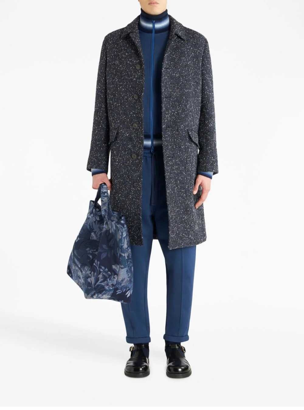 Stay warm and stylish in this ETRO Coat. Made from 95% Virgin Wool and 5% Polyamide, this luxurious coat is perfect for the modern man. With a sleek design and classic color, it's a must-have for your wardrobe. Elevate your style with ETRO.