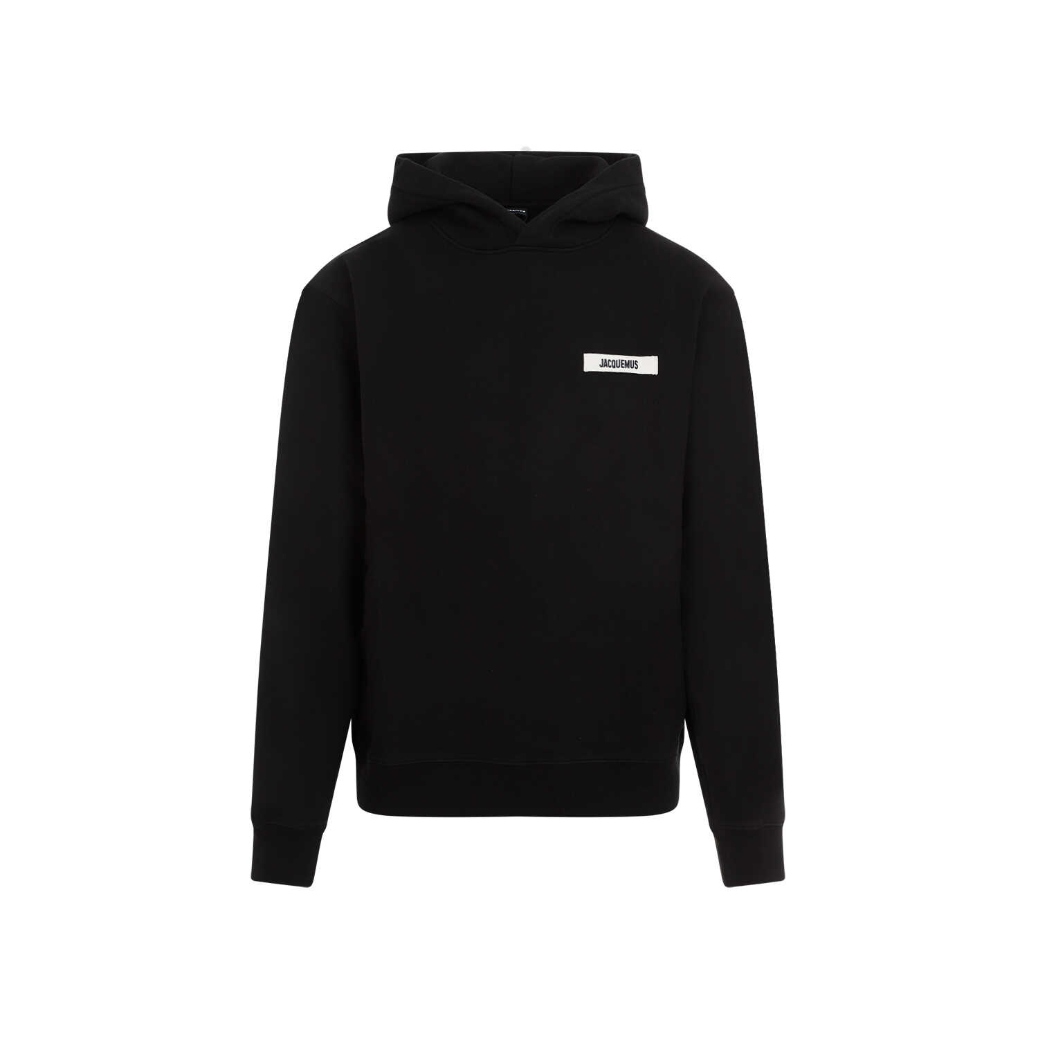 Stay stylish and comfortable in this black cotton hoodie from JACQUEMUS. Featuring an attached hood, long sleeves, and a contrasting logo on the chest, this sweatshirt offers a regular fit with ribbed cuffs and waistband. Made from 100% cotton, it's the perfect addition to your wardrobe. Elevate your casual look with this trendy piece.