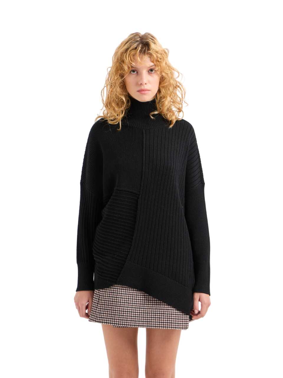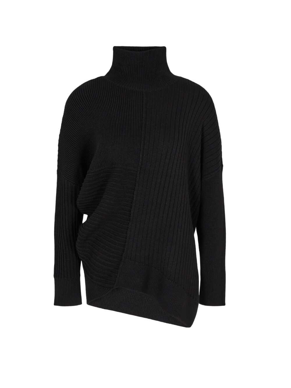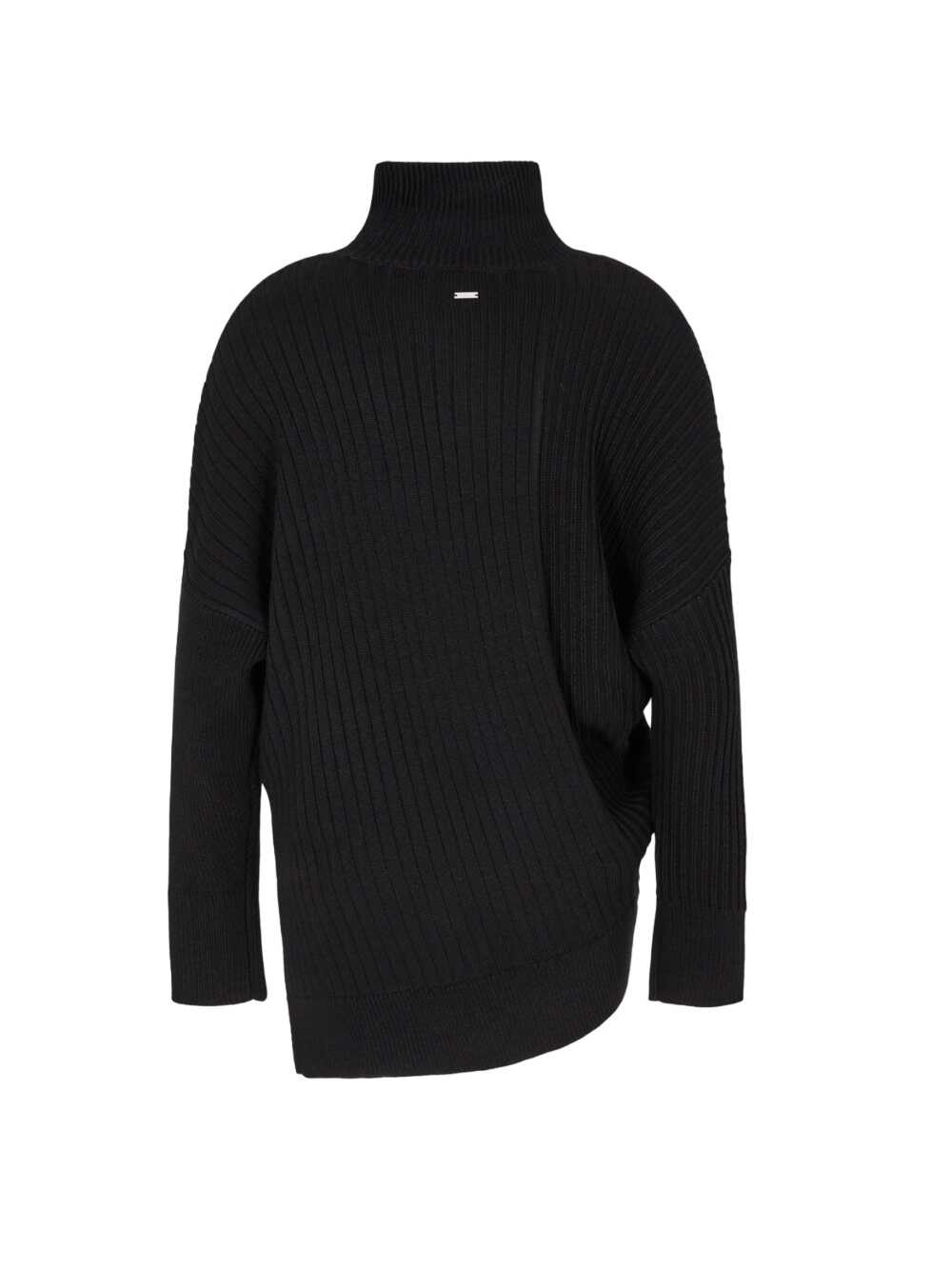 Stay cozy and stylish in this Black Armani Exchange Pullover. Featuring a unique turtleneck design with detailed sleeves and an elasticated cuff, this sweater is made from a soft cotton wool blend to keep you warm and comfortable throughout the winter season. Perfect for any occasion, this sweater is a must-have addition to your wardrobe.