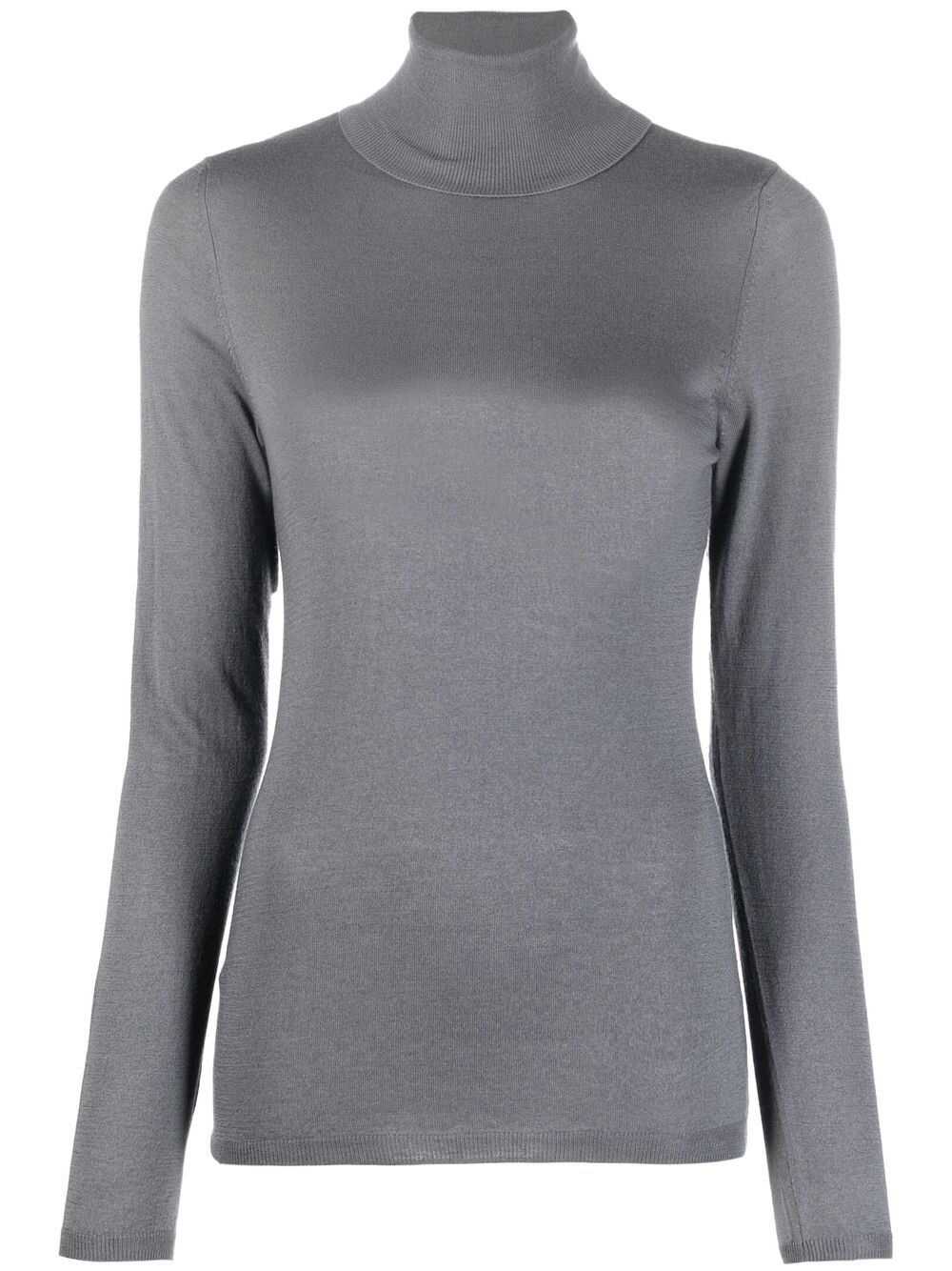 Stay cozy and chic in this luxurious Turtleneck Sweater by SNOBBY SHEEP. Made with a blend of 55% Silk and 45% Cashmere, this lead-colored sweater is the perfect addition to your wardrobe. Elevate your style with this effortlessly elegant piece.