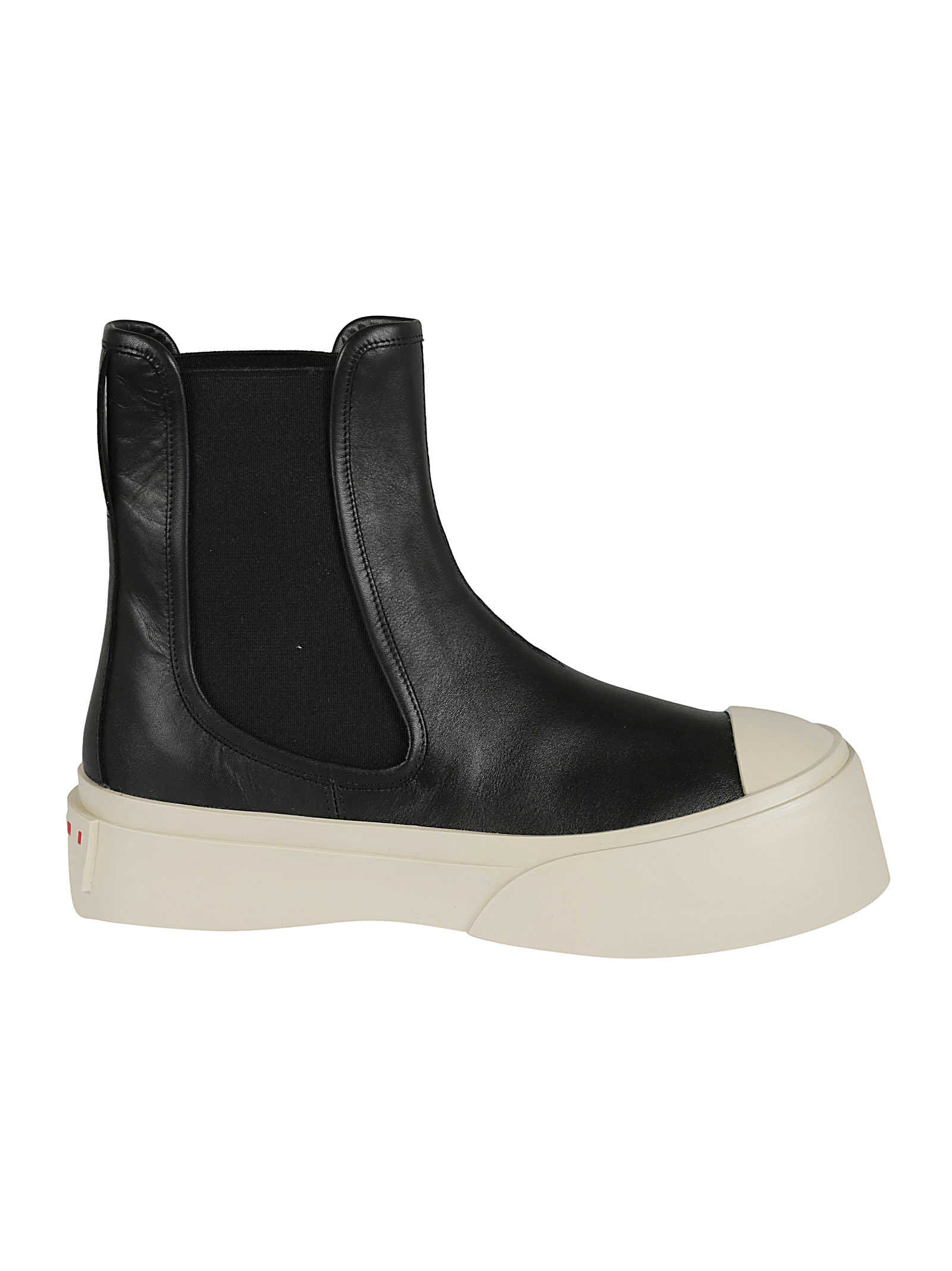 Step out in style with these sleek and chic Black Pablo Chelsea boots by Marni. Made of high-quality Nappa leather, these boots feature a slip-on design, elastic panels at the side, and a chunky platform sole with the Marni logo. Perfect for adding a touch of edge to any outfit. Get yours today!