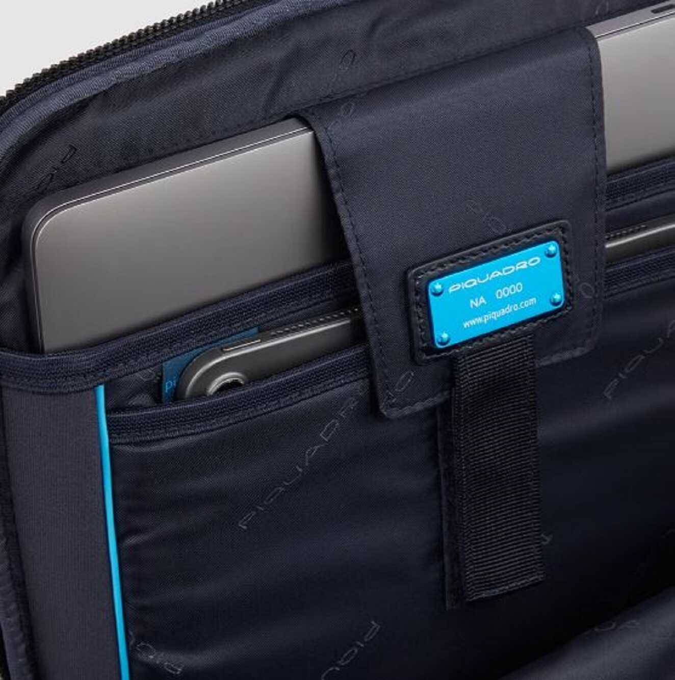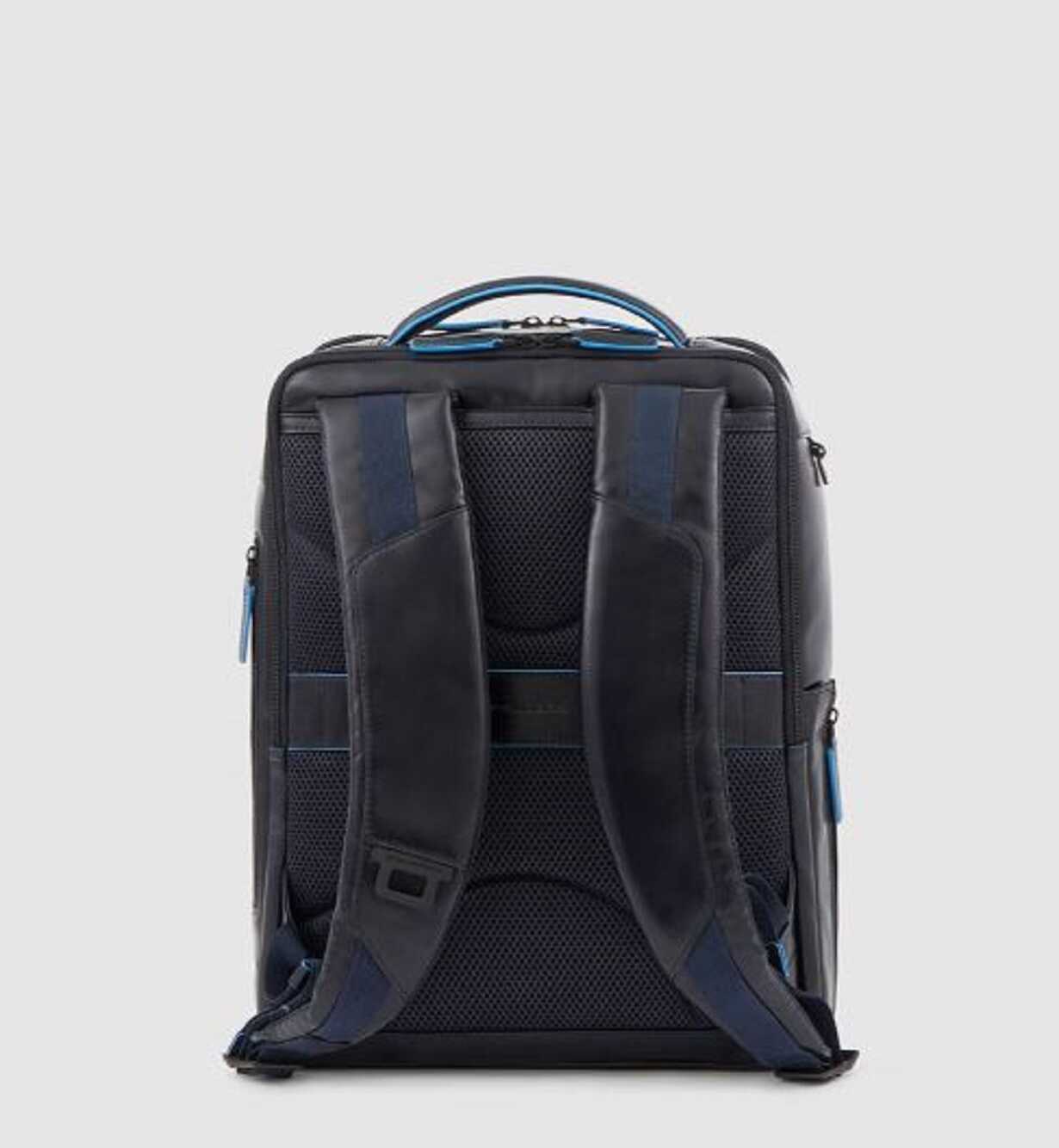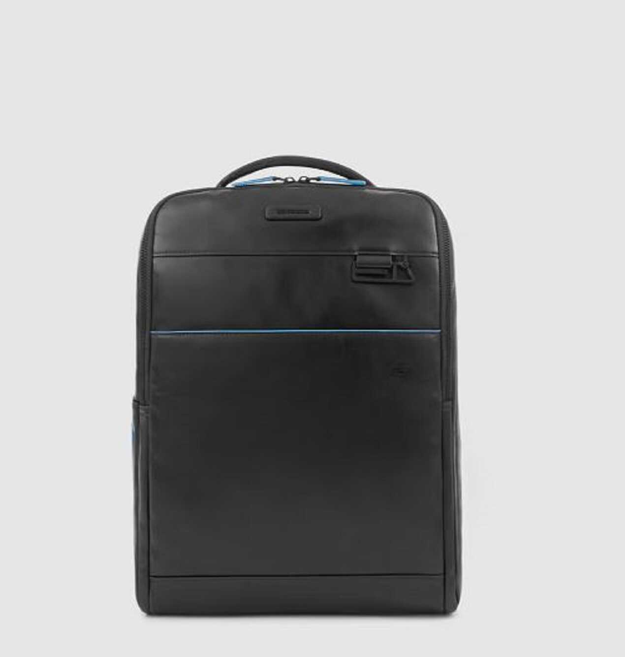 Carry your laptop and iPad in style with this black backpack by Piquadro. Made from 100% leather, it features anti-theft cable, RFID anti-fraud protection, and pockets for AirPods and CONNEQU. With a bottle or umbrella holder, fixed iPad Pro 12.9 holder, and a vertical construction, this backpack is perfect for everyday use. It also fits 15.6 laptops and has a trolley attachment system with cord. The double closure with lamp and fixed internal organization with sleeves and pockets make this backpack a must-have for anyone on-the-go. Get yours today!
